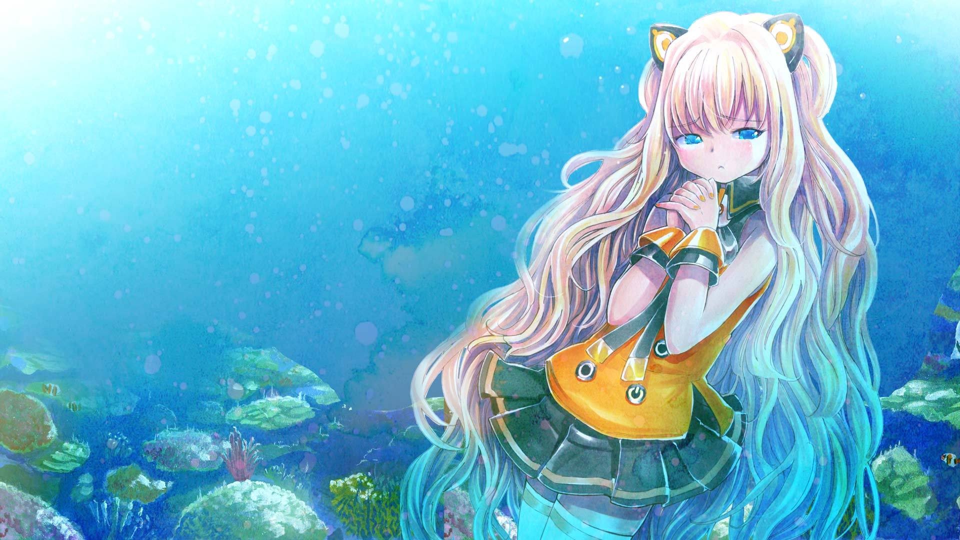 Description: A anime girl with long hair holding a yellow bag in her hand and a cat ears on her head.