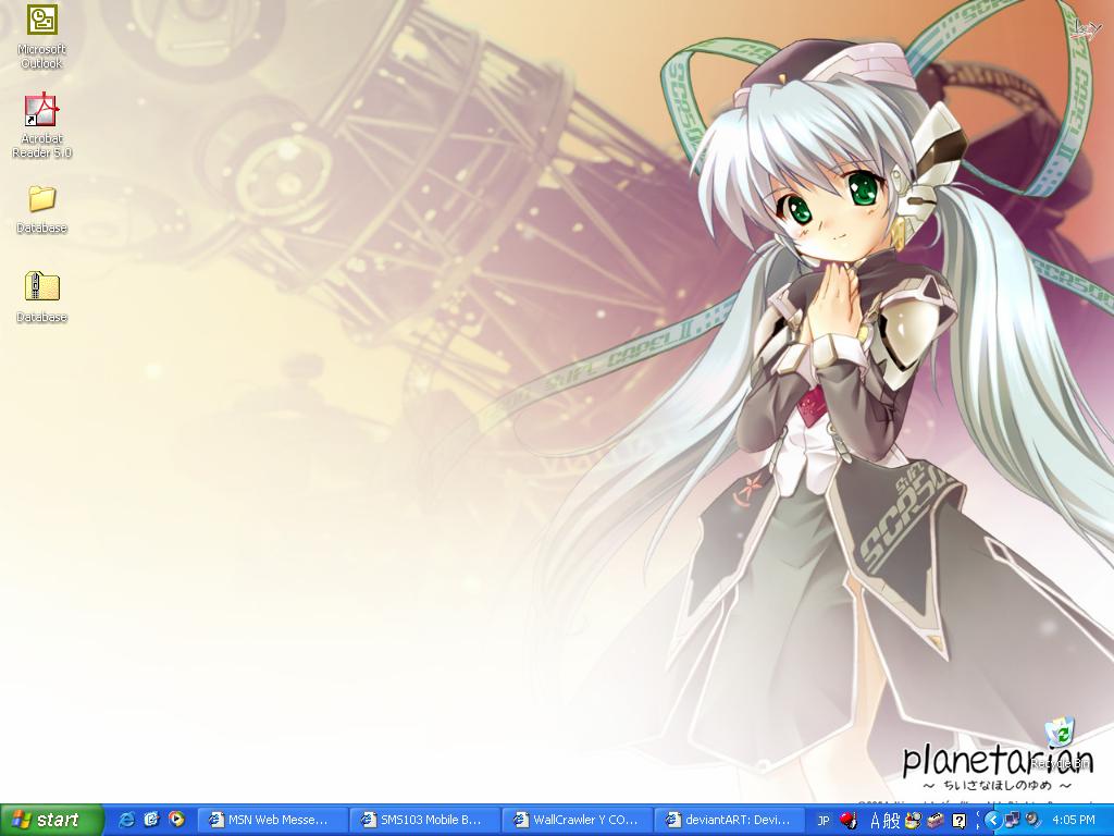 Description: A anime girl with long white hair and a white wig is standing in front of a computer screen with a background.