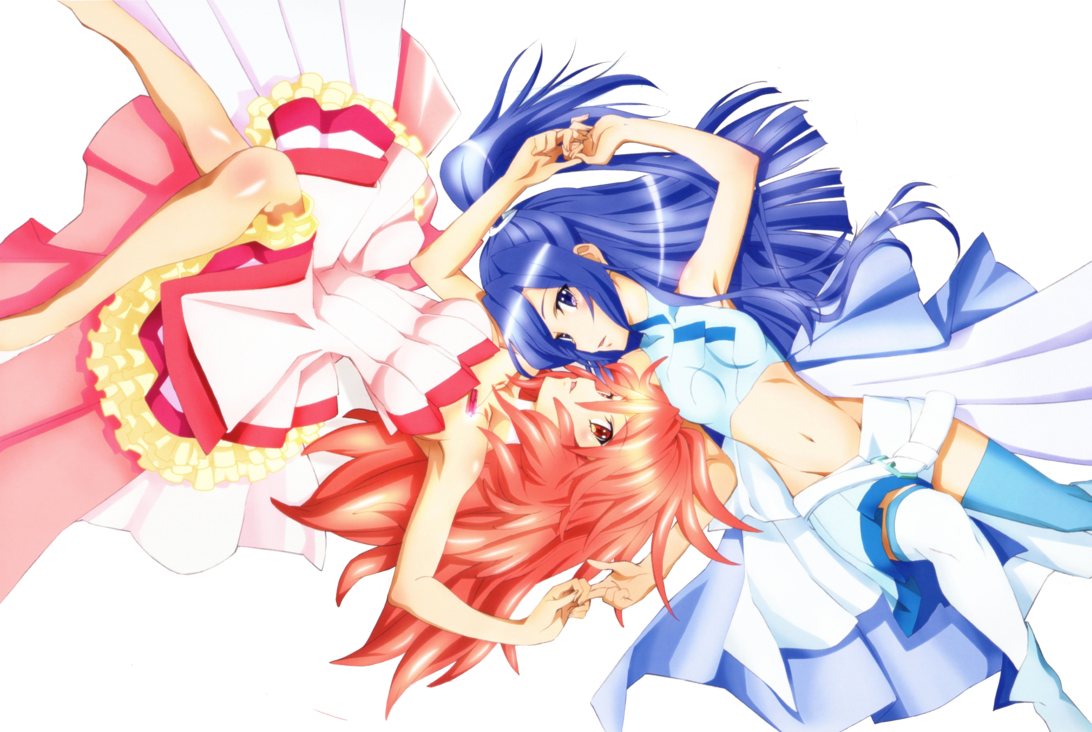 Description: Two anime girls with blue hair and pink hair.