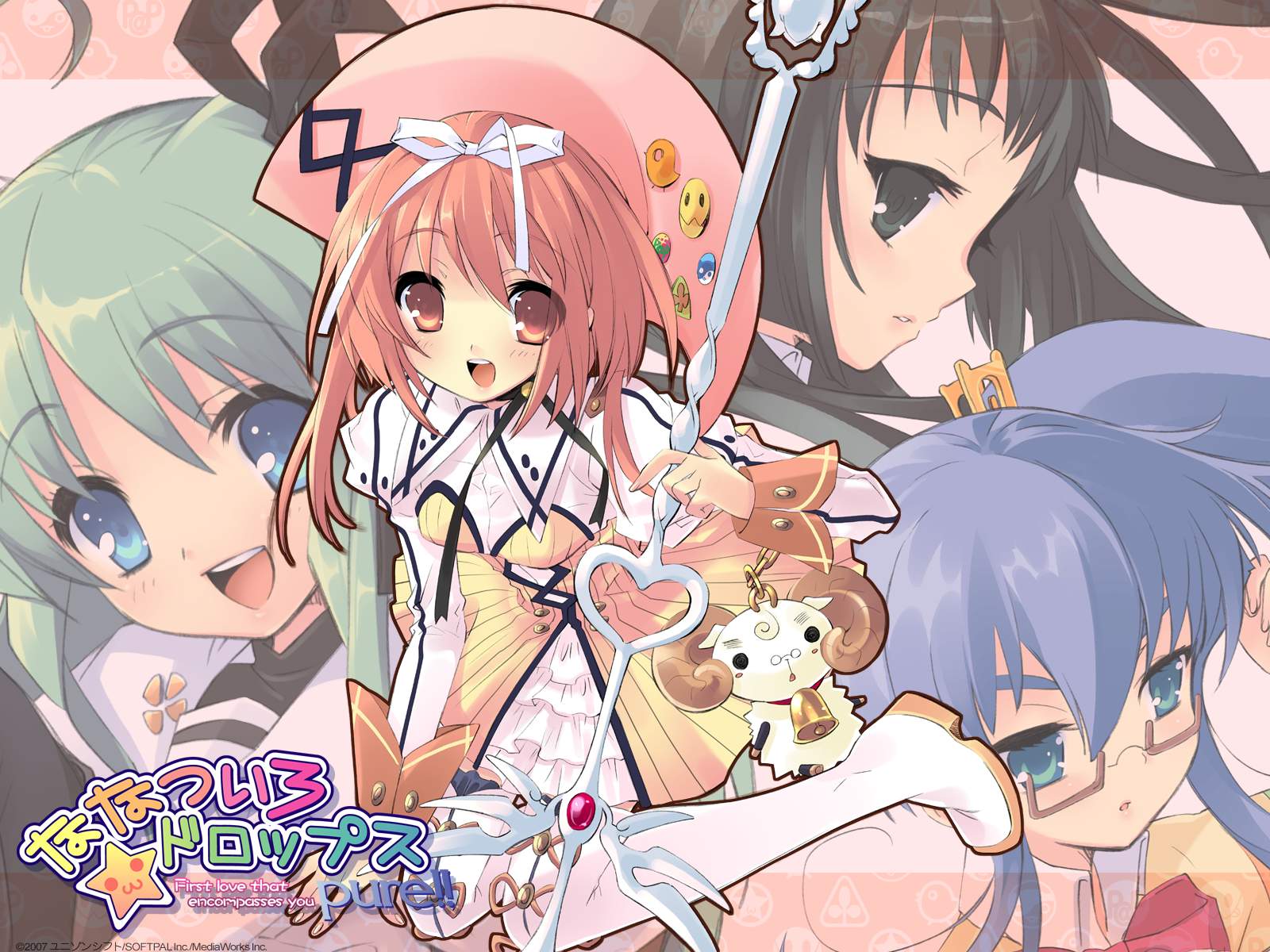 Description: A group of anime girls with hats and dresses on.