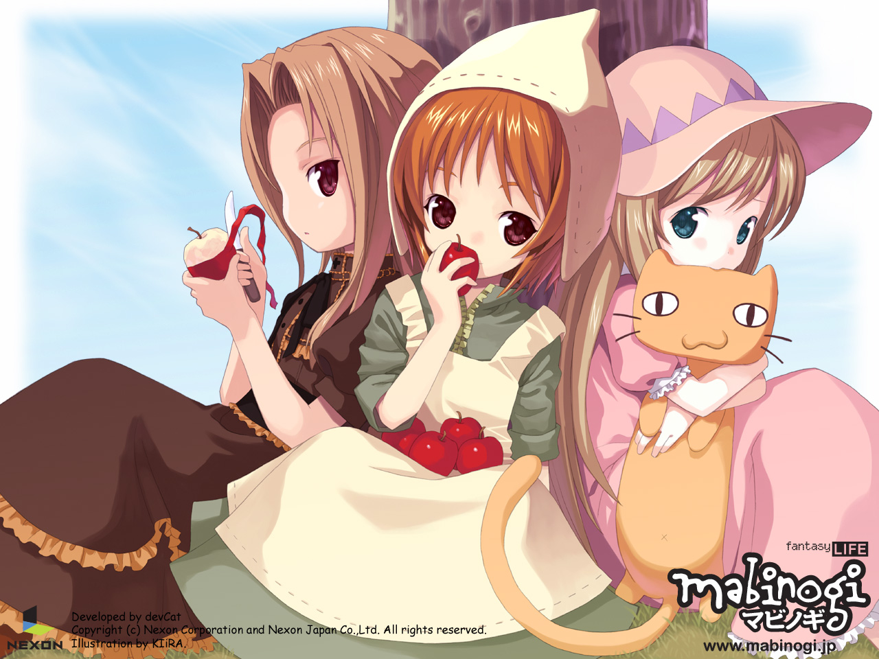 Description: Two anime girls sitting next to each other with a cat on their lap and a cat on their lap.