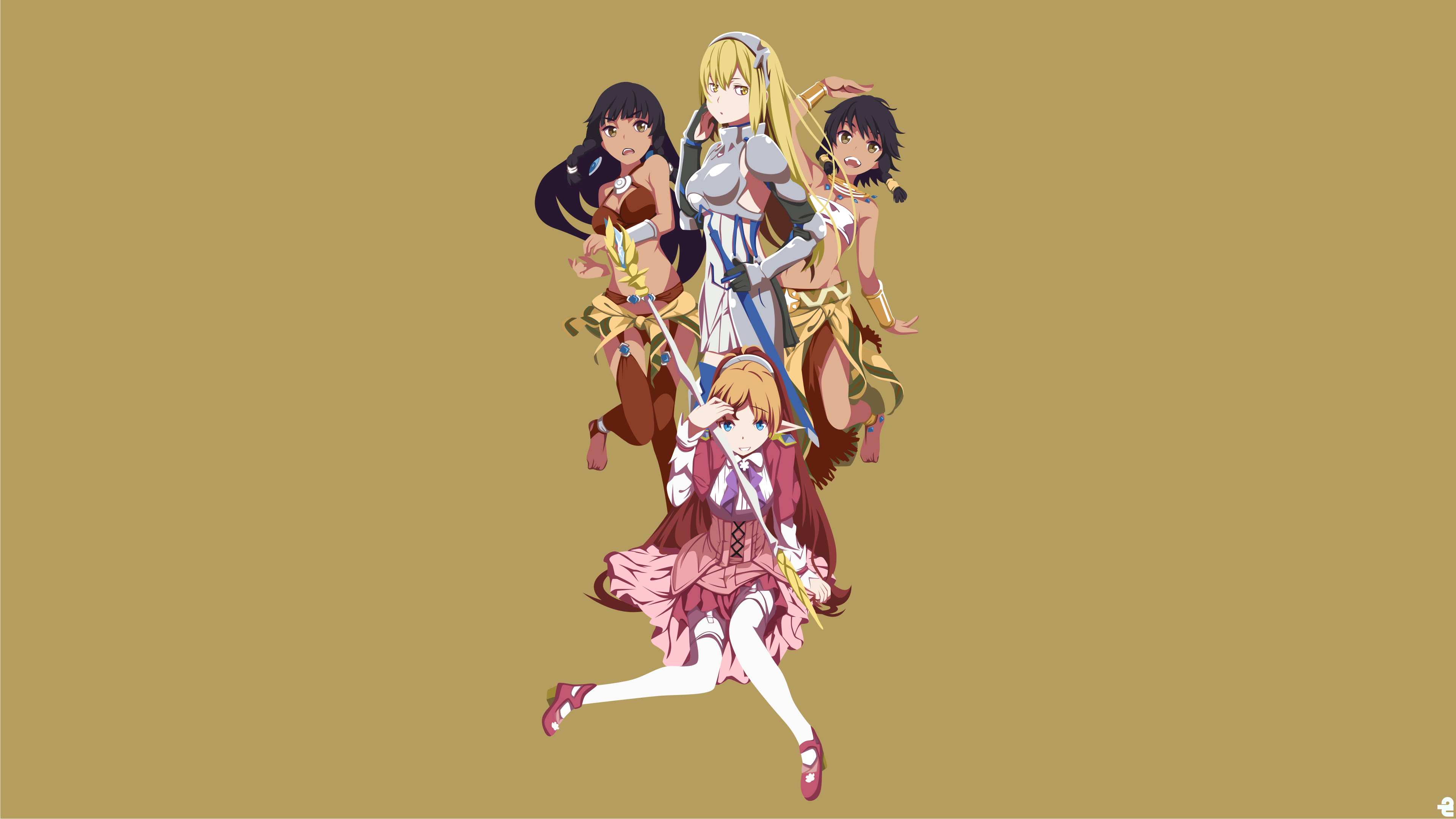 Description: A group of anime girls standing next to each other on a brown background with a brown background and a white background.