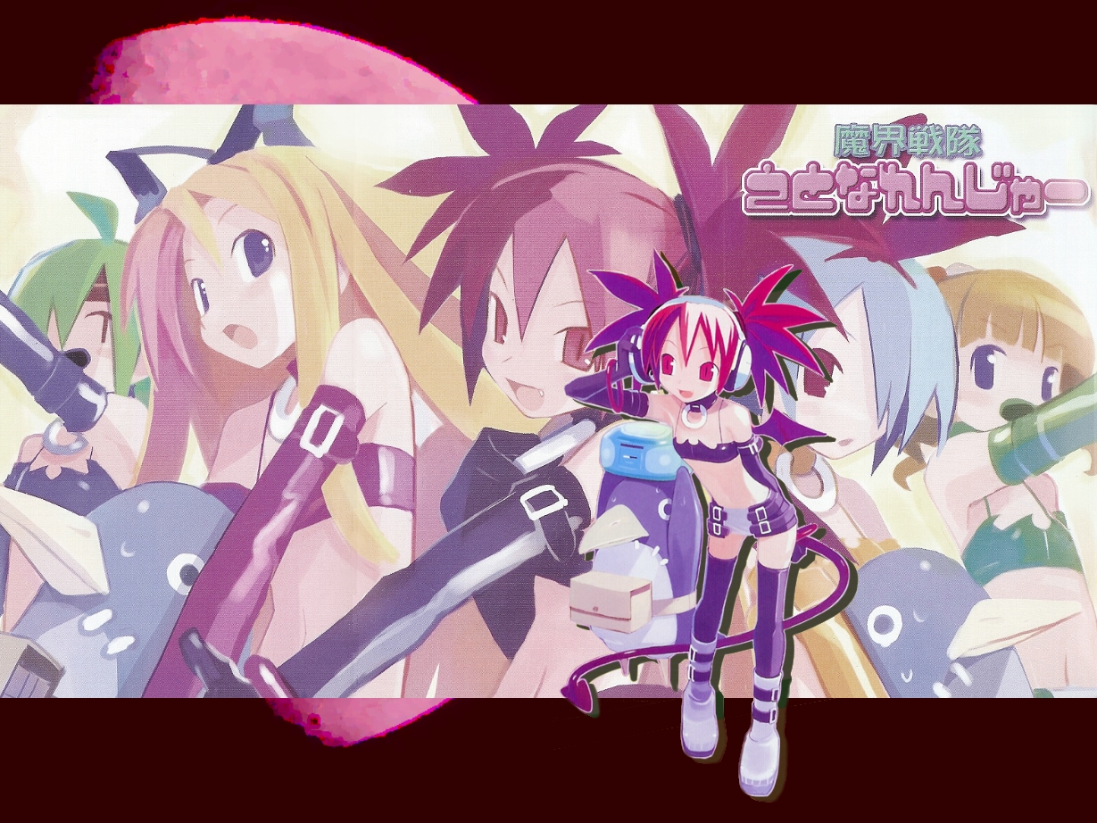 Description: A group of anime girls with guns and a pink background with a red circle in the middle of the frame.