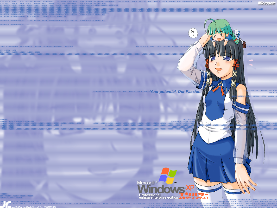 Description: A anime character with long hair and a blue dress is holding a black object in her hand and a blue background.
