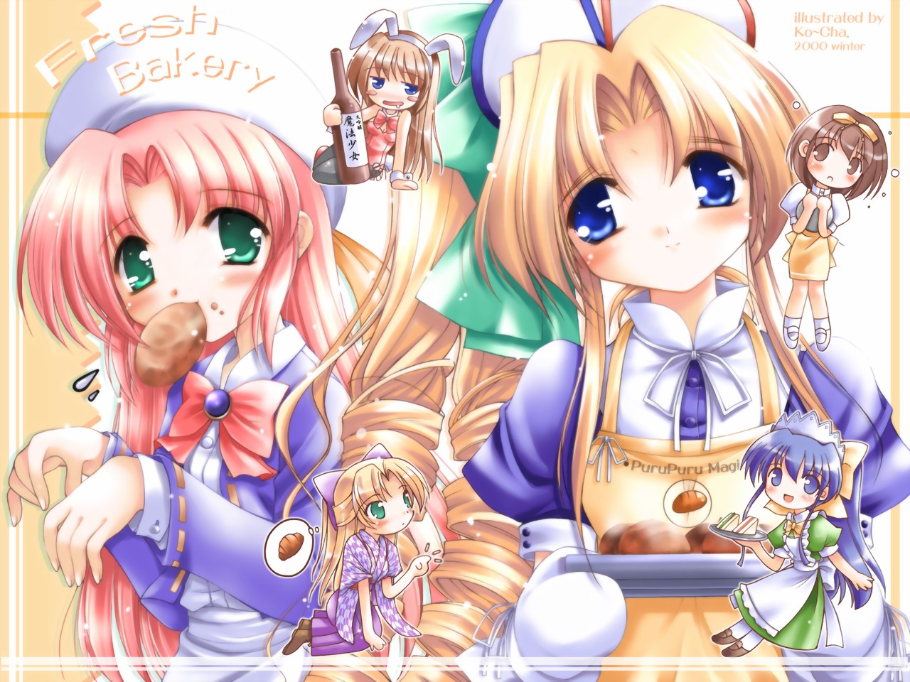 Description: A group of anime girls with long hair and blue eyes.