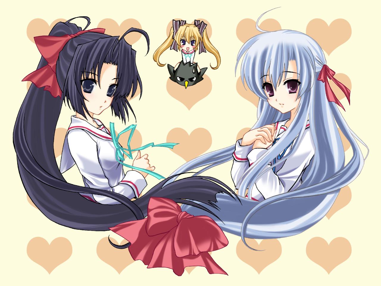 Description: Two anime girls with long hair and bows on their heads.