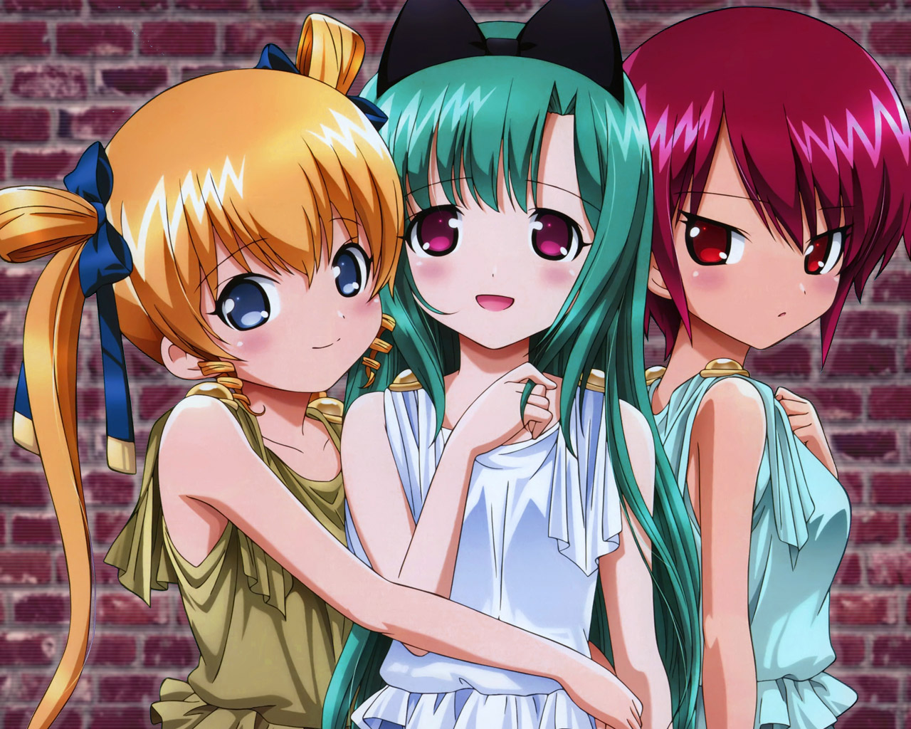 Description: Three anime girls with long hair and cat ears.
