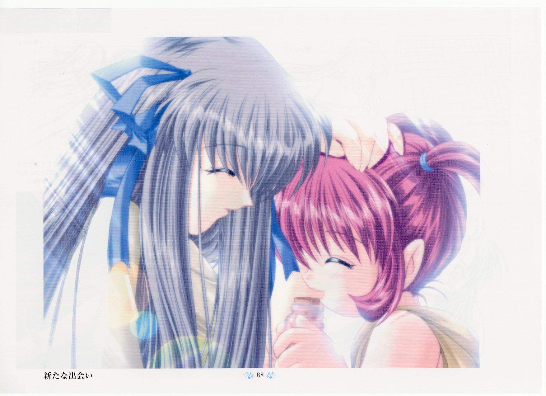 Description: Two anime girls with long hair and one has a phone in her hand and the other has a ponytail.