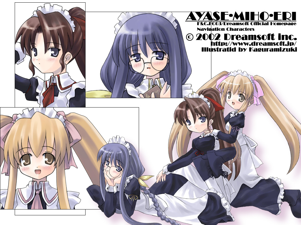 Description: A couple of anime girls with long hair and a dress and a bow tie.