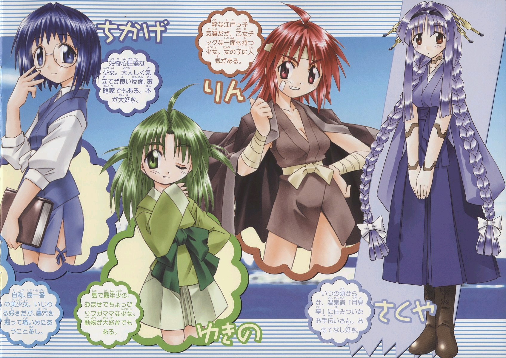 Description: A group of anime girls with different hair colors and hairstyles.