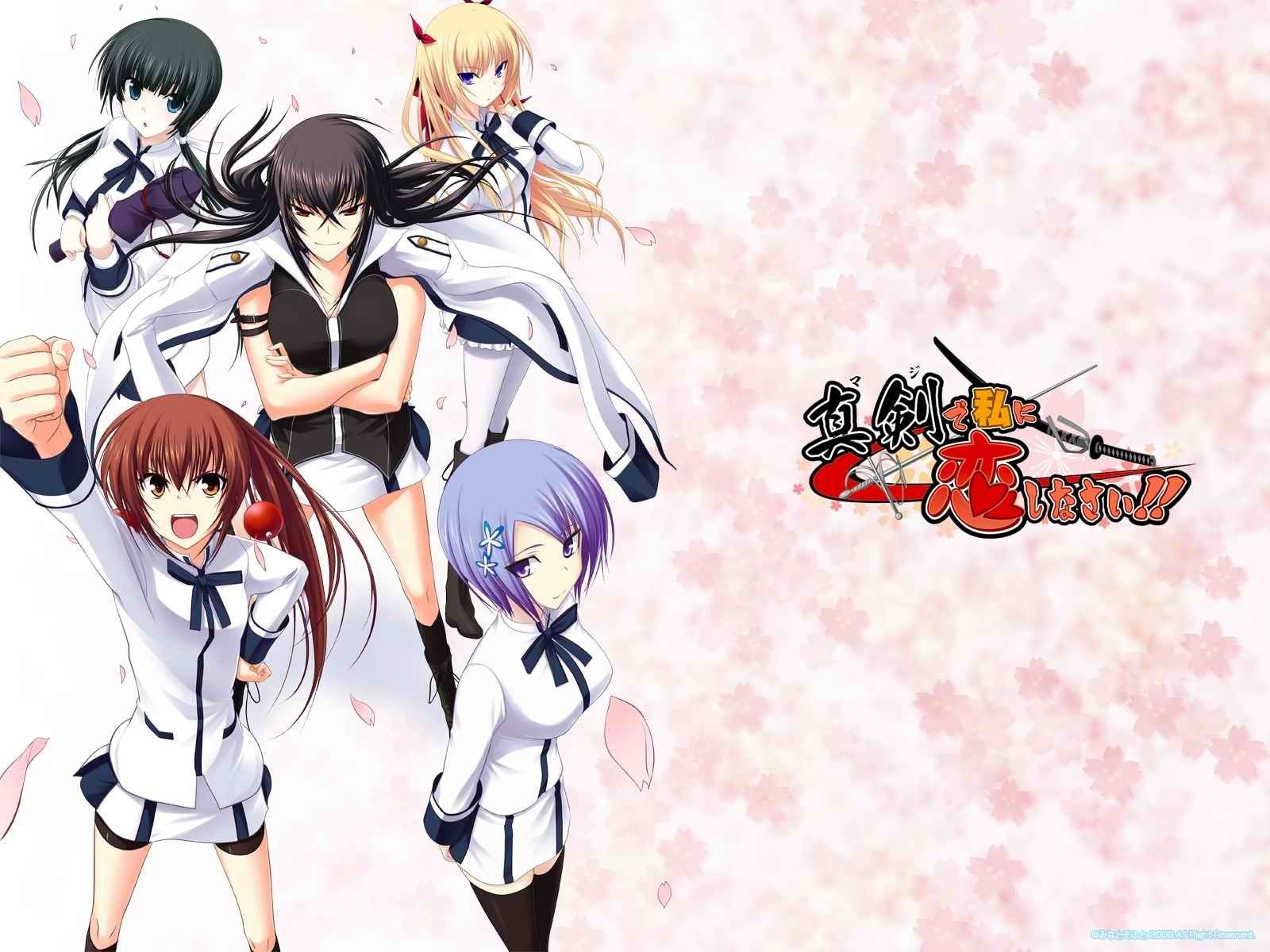 Description: A group of anime girls standing next to each other on a pink background with flowers in the background and a pink background with a white background.