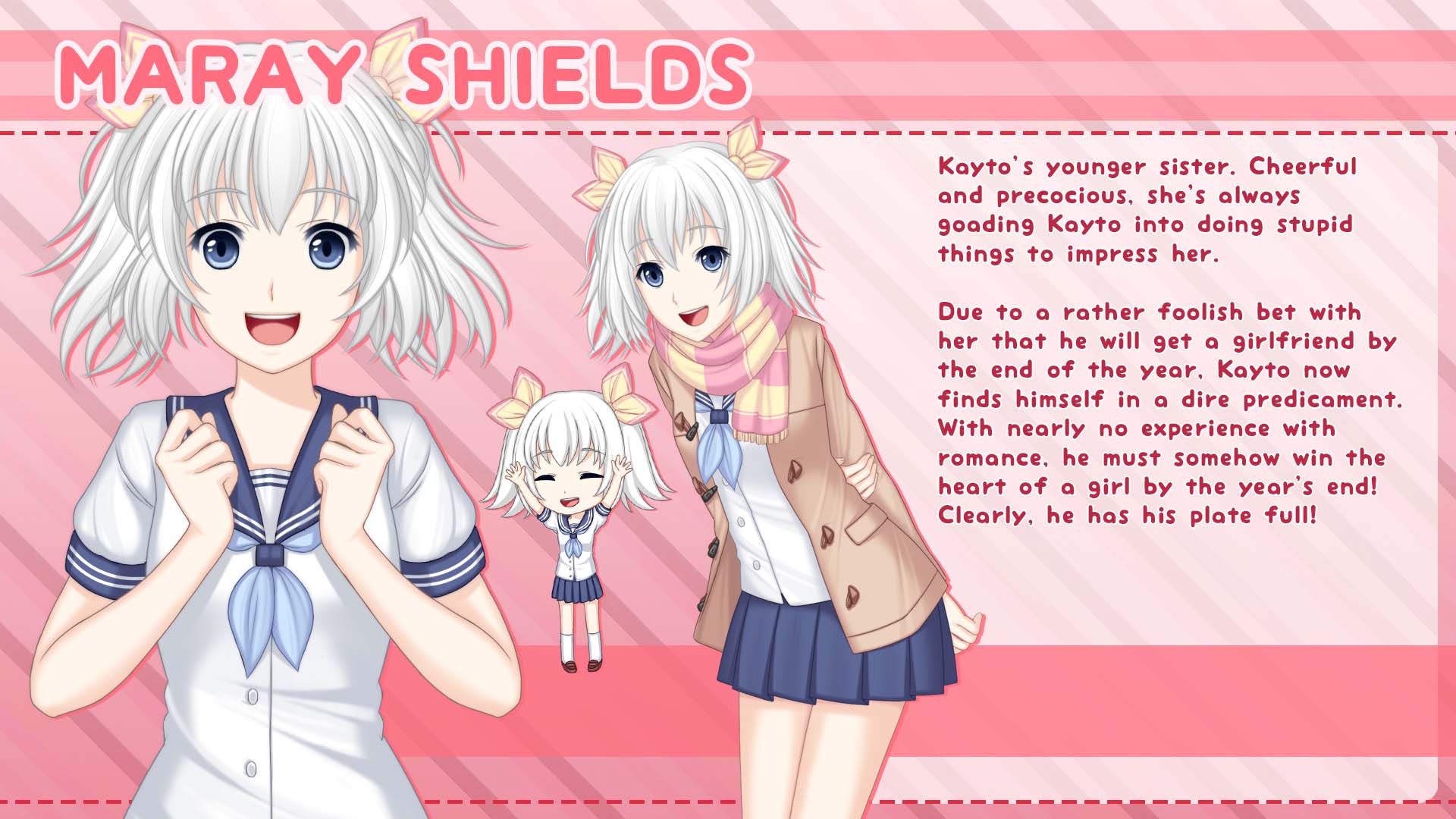 Description: A couple of anime girls standing next to each other with a pink background and a pink background with a pink stripe.