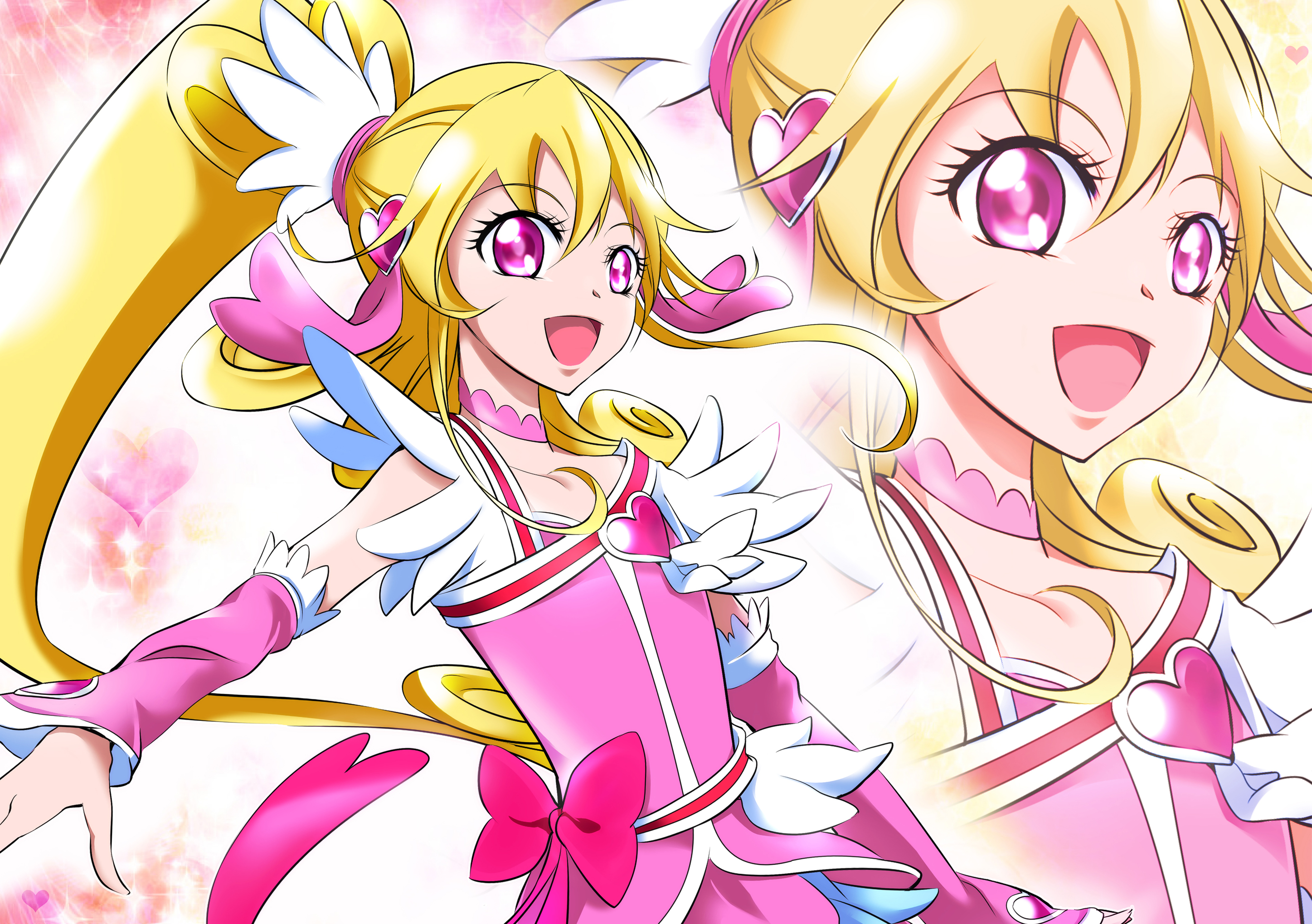 Description: Two anime girls with pink hair and pink eyes and blonde hair.