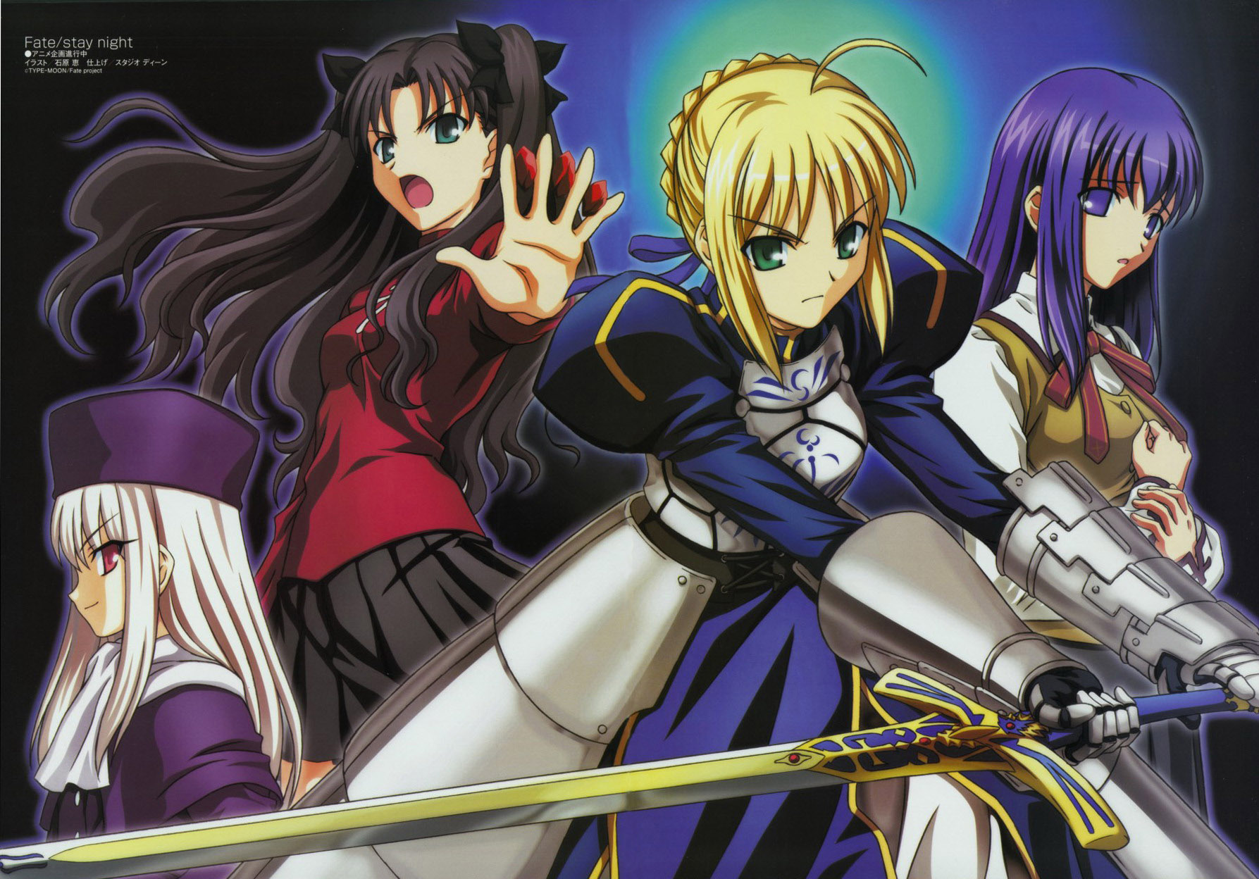 Description: A group of anime girls with swords and armor on their backs.