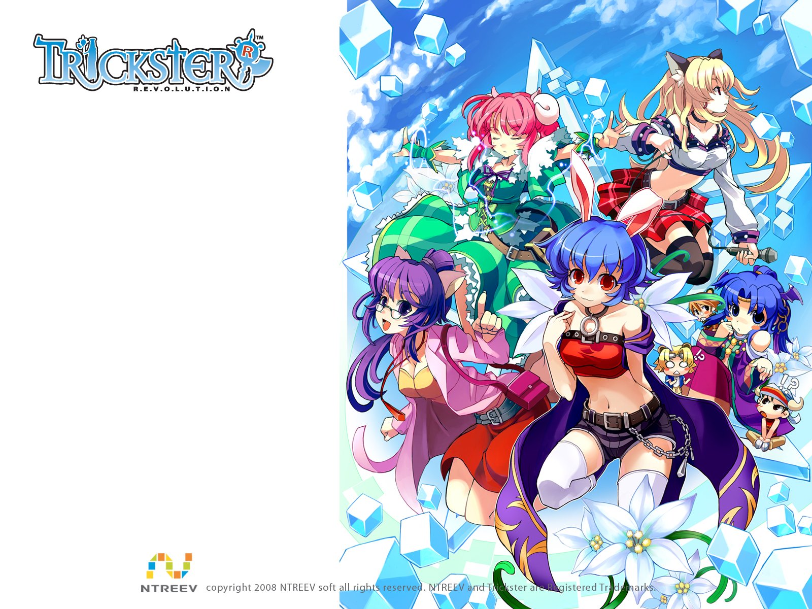 Description: A group of anime girls with a white background and a white sheet of paper in the middle of the frame.