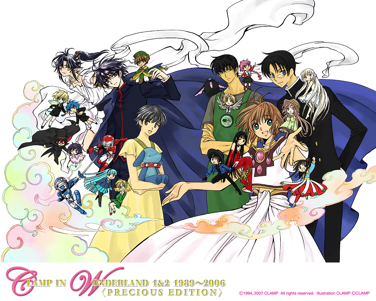 Description: A group of anime characters standing together in front of a white background with a caption that reads.