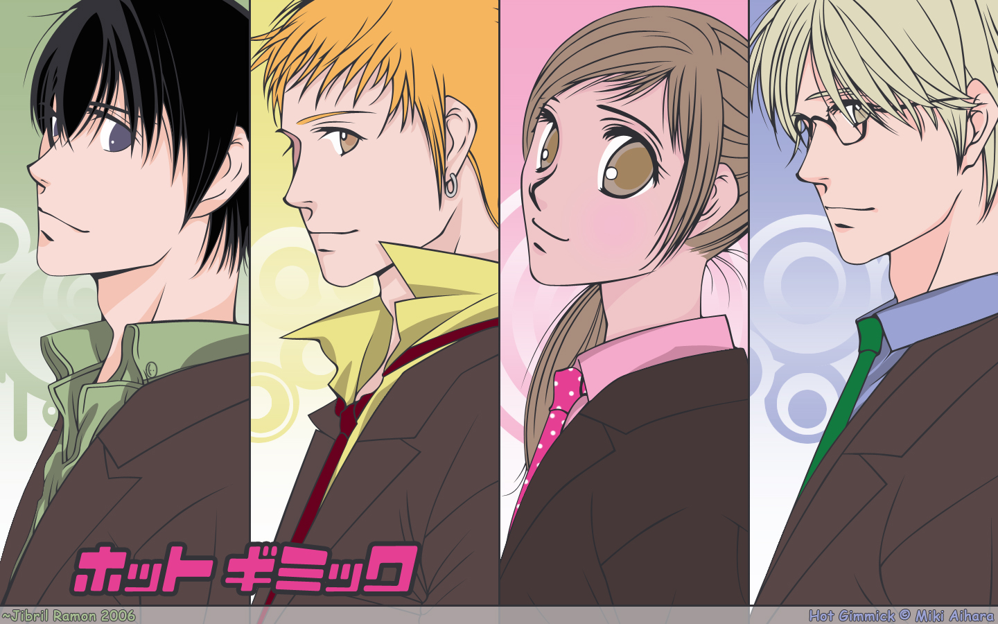 Description: A group of anime characters with different colored hair colors and hairstyles.