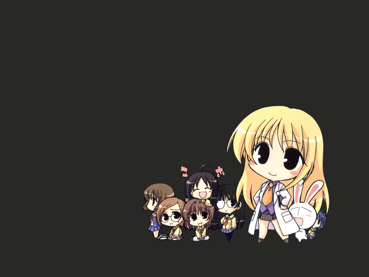 Description: A group of anime characters standing next to each other on a black background with a black background and a black background.