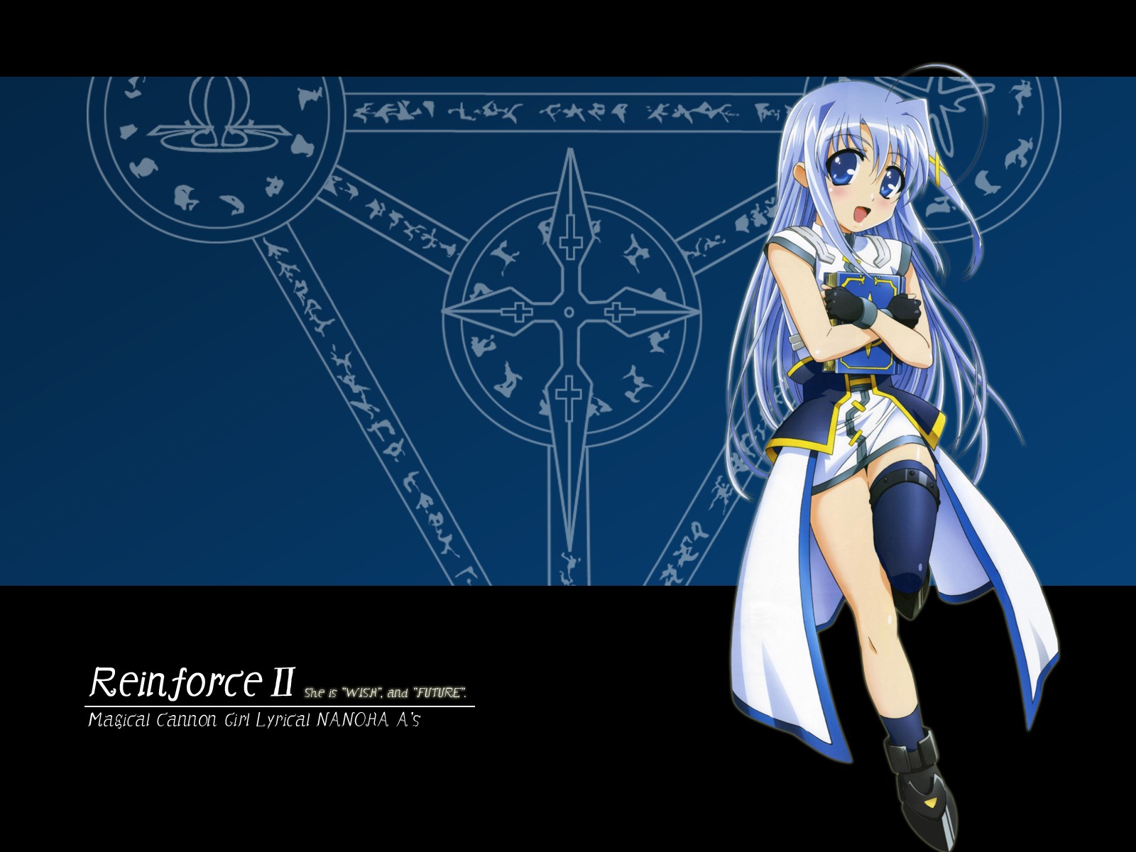 Description: A anime character with a sword and a blue background with a white outline and a black background with a blue background and a white line drawing of a.