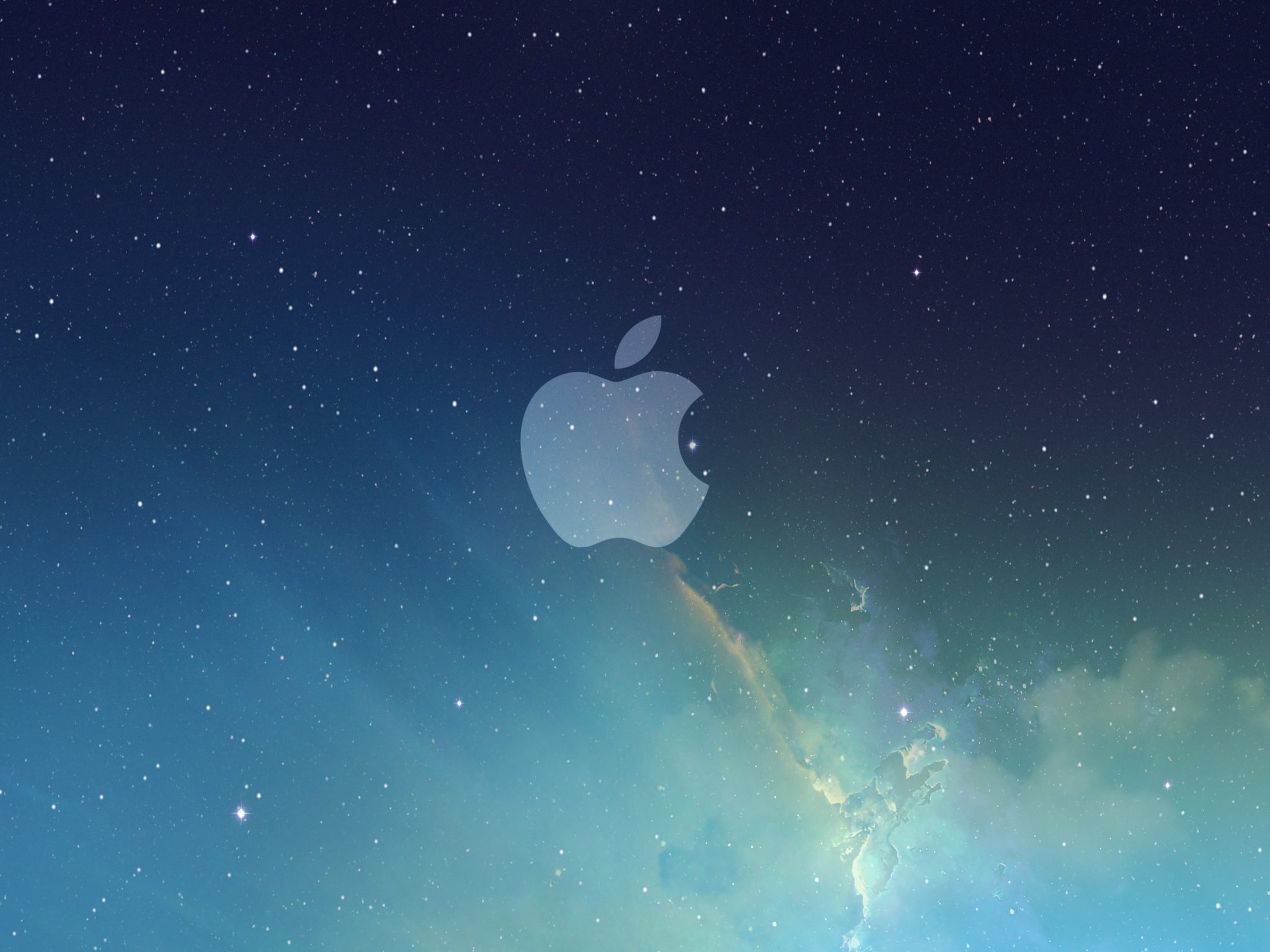 Description: A picture of an apple logo on a blue background with stars and a sky full of stars and a blue sky.
