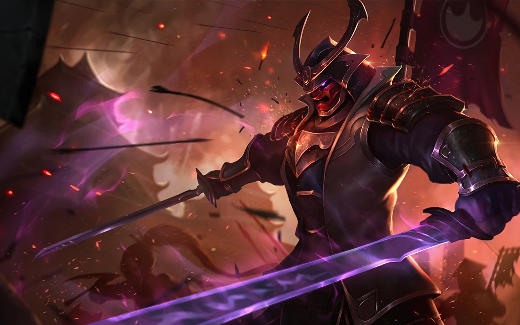 Description: A man in armor holding a sword and a sword in his hand with a demon on it's back.