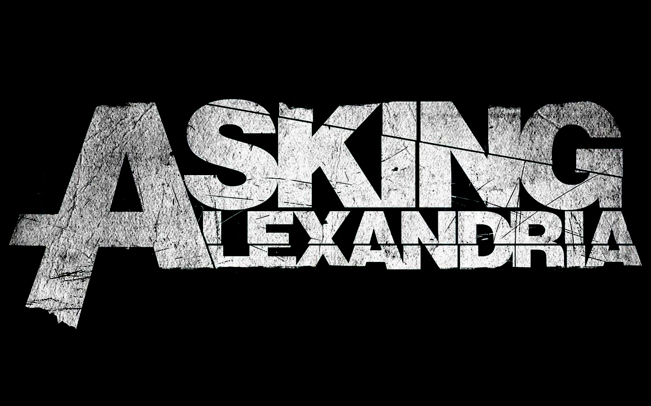 Description: A black and white photo of the words asking alexandria on a black background with a white outline of a cross.