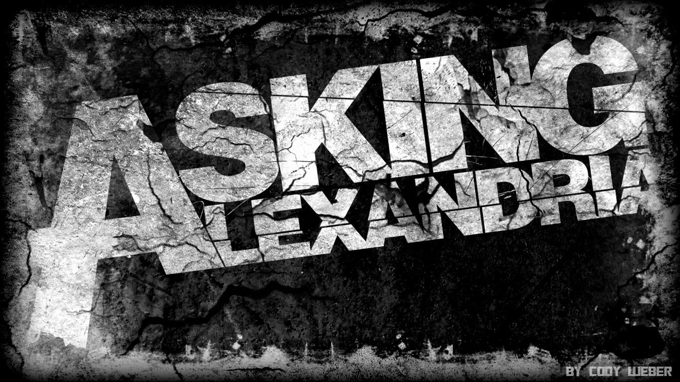 Description: A black and white photo of a sign that says asking alexandria on it's side.
