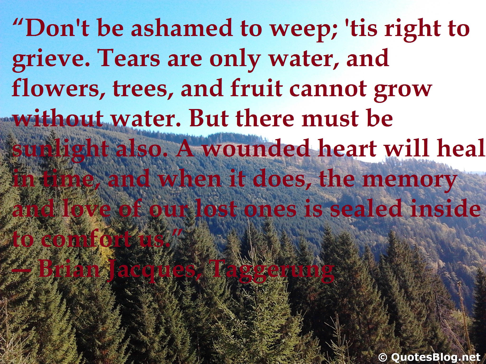 Description: A quote from a person on a mountain with trees in the background and a quote from a person on a mountain.