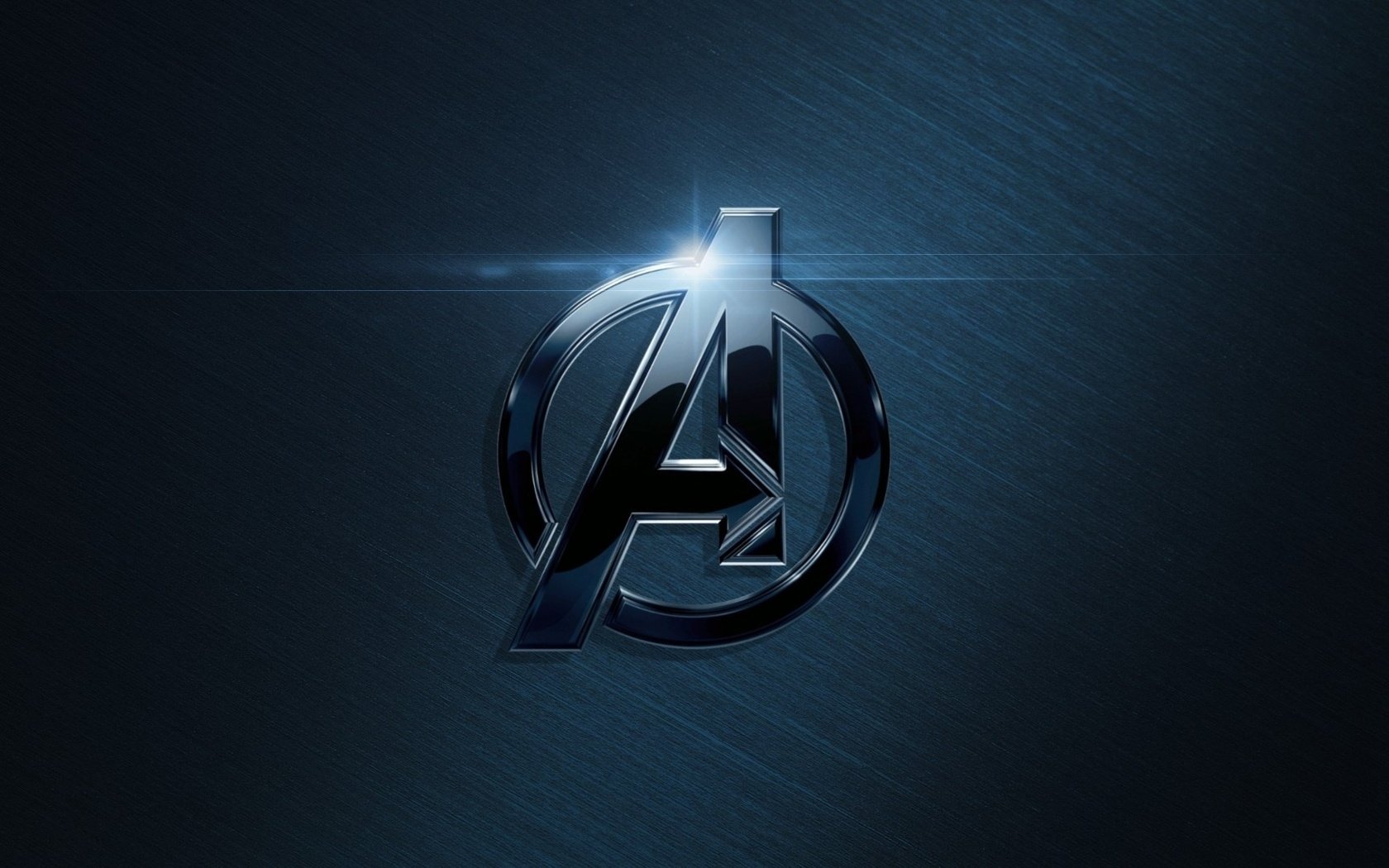 Description: The avengers logo on a dark background with a light shining through it's center and the letters'avengers'in the middle.