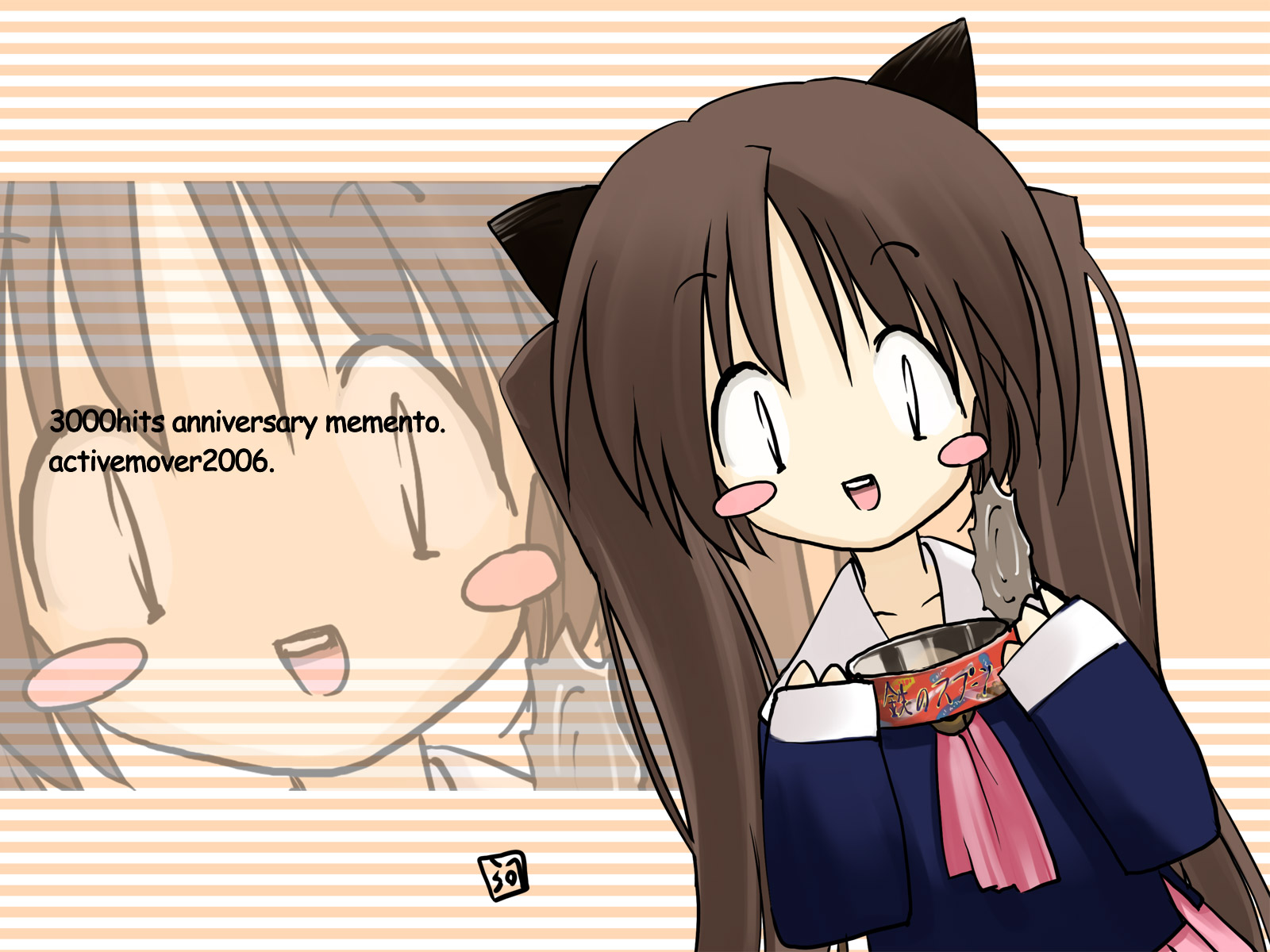 Description: A cartoon character with a cat ears and a cat tail on her head.