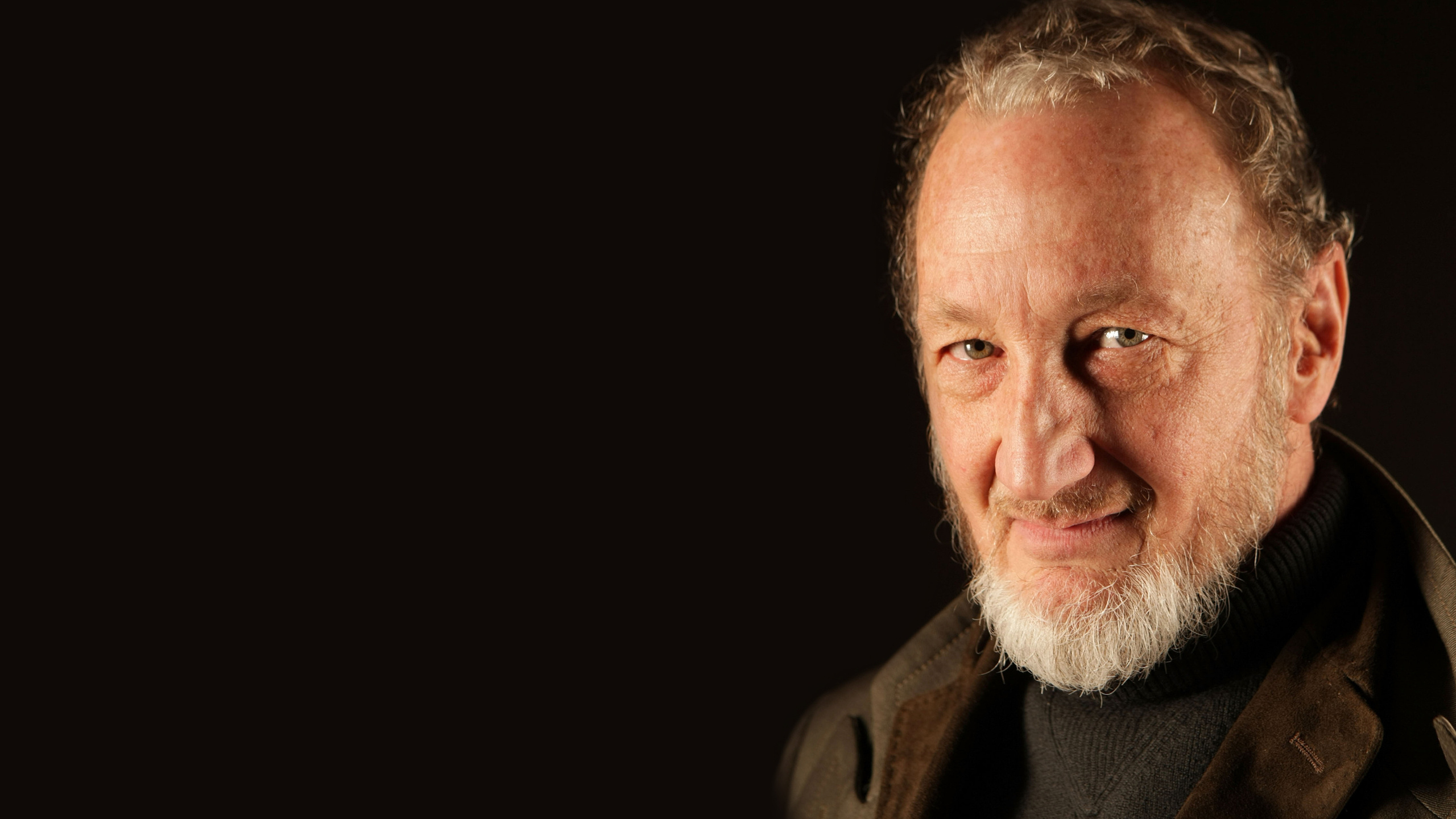 Description: A man with a beard and a jacket on posing for a picture with a black background and a black background.
