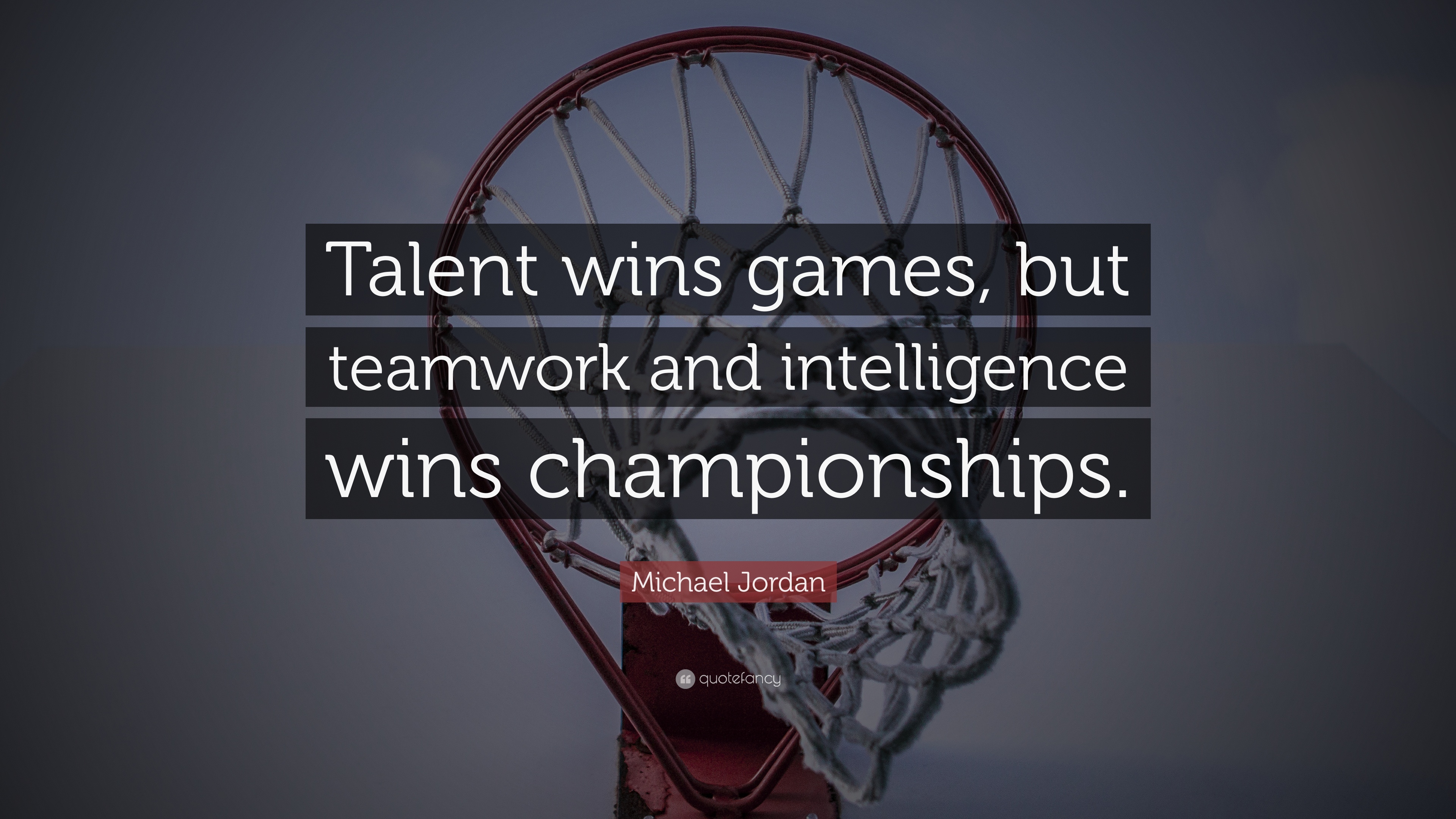 Description: A basketball hoop with a quote on it that says talent wins games.