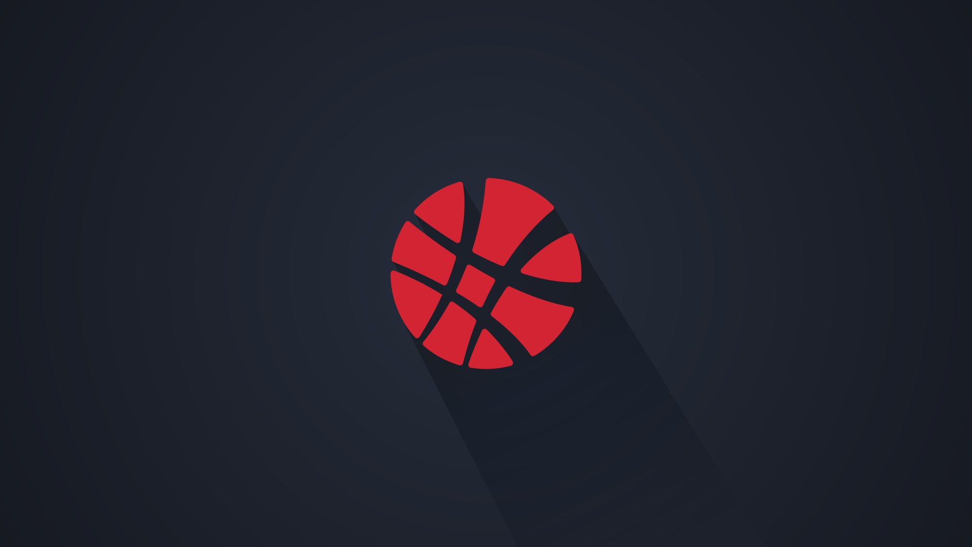 Description: A basketball ball with a shadow on a dark background with a long shadow on the bottom of it.