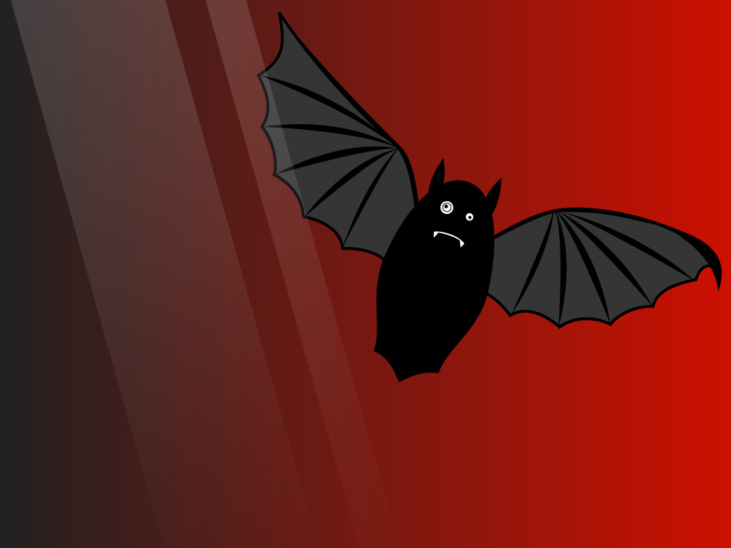 Description: A bat with a sad face on it's wings flying in the air with a red background behind it.