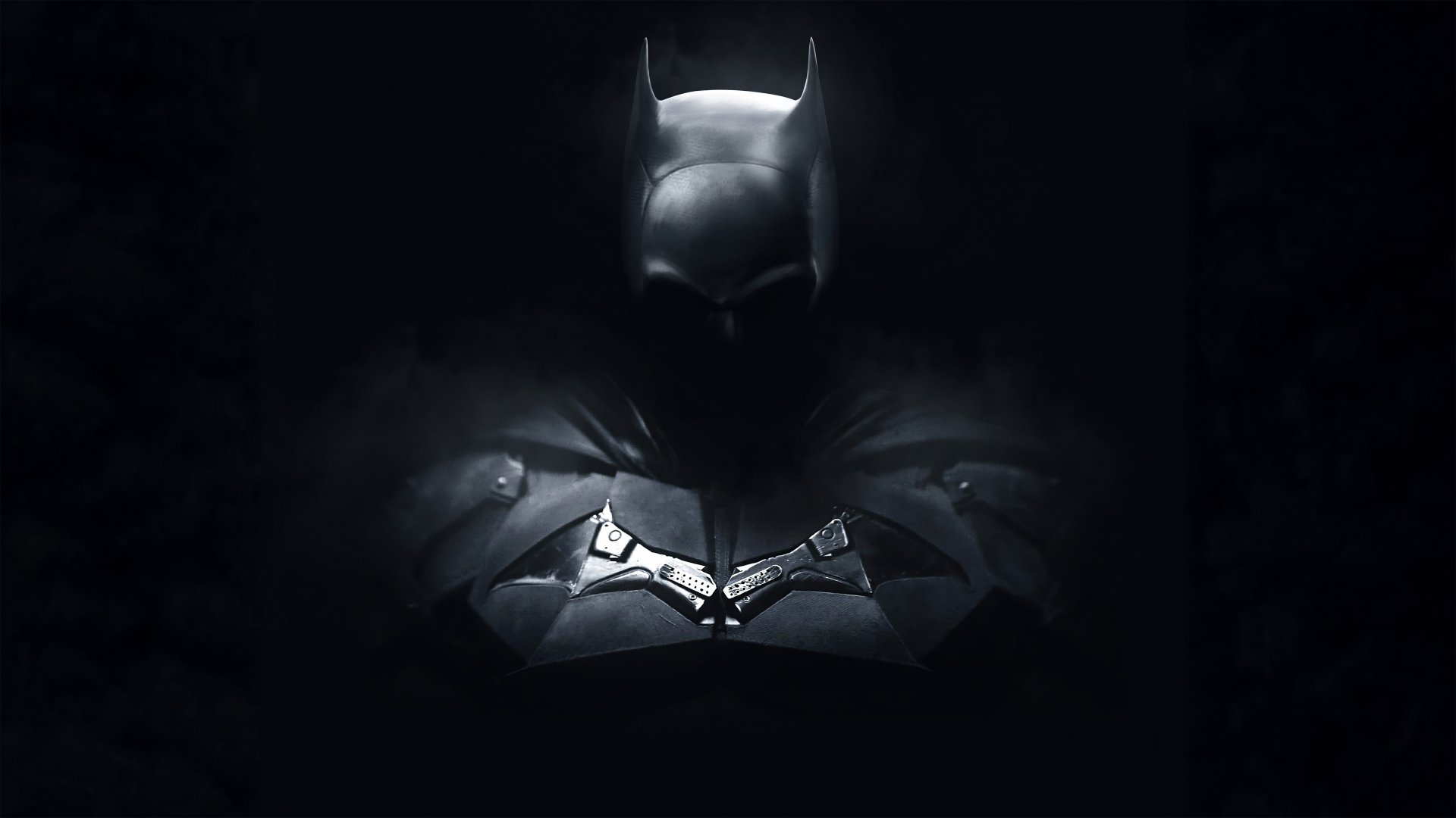 Description: A batman in the dark with his bat on his chest and his hands on his chest.