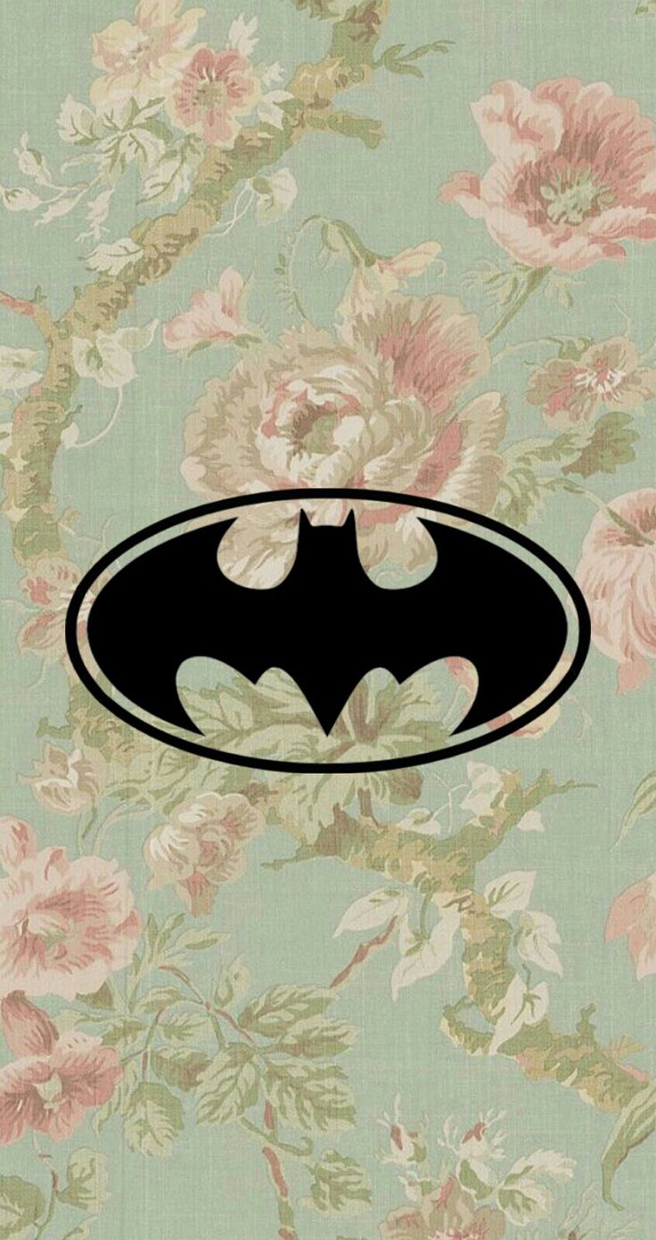 Description: A batman symbol on a floral background with a black outline on the center of the image and a black bat on the center of the image.
