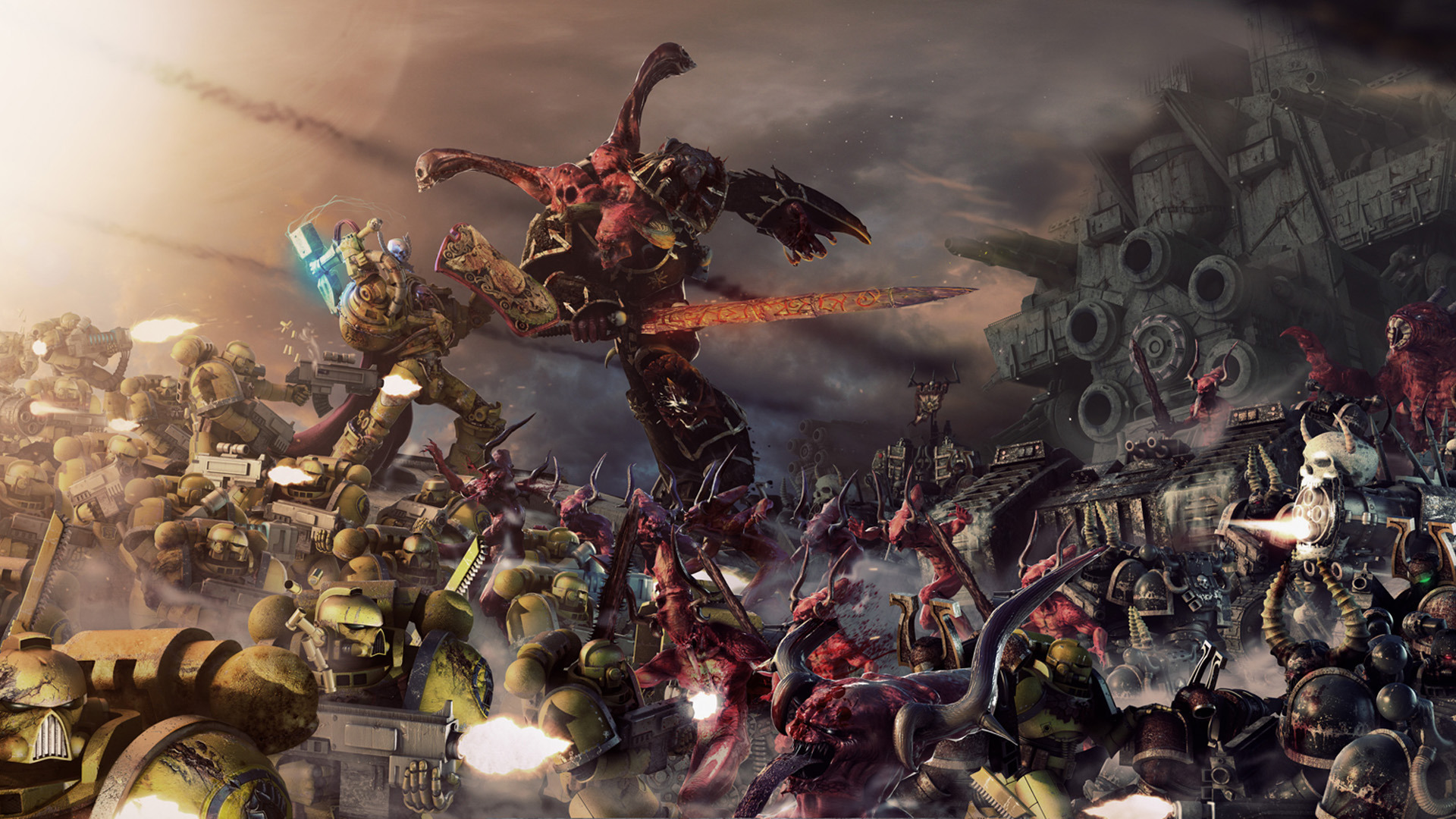 Description: A bunch of people in a battle with a giant robot in the background and a giant robot in the foreground.