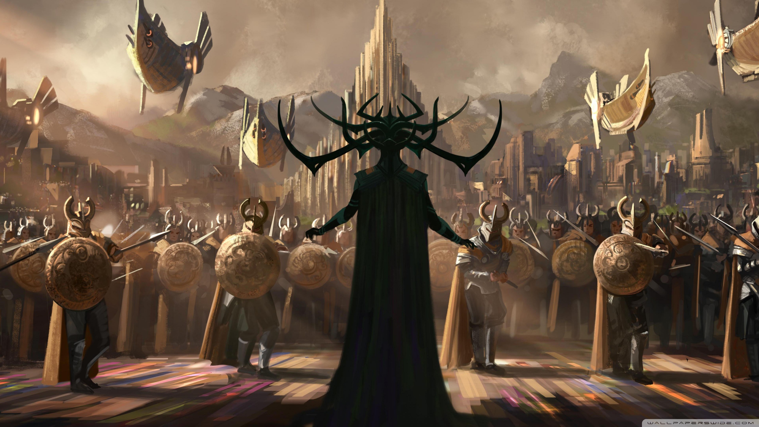 Description: A scene of a battle with a lot of people in it and a giant demon standing in front of them.