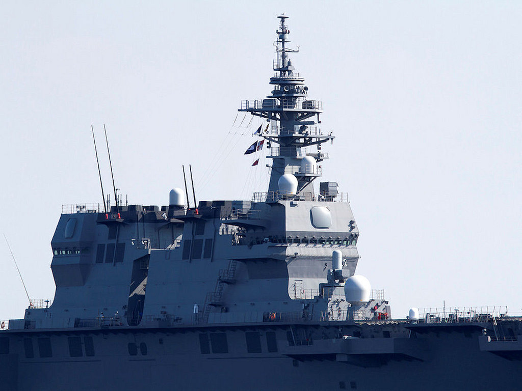 Description: A large battleship with a flag on it's mast and a sky background with a few clouds in the sky.