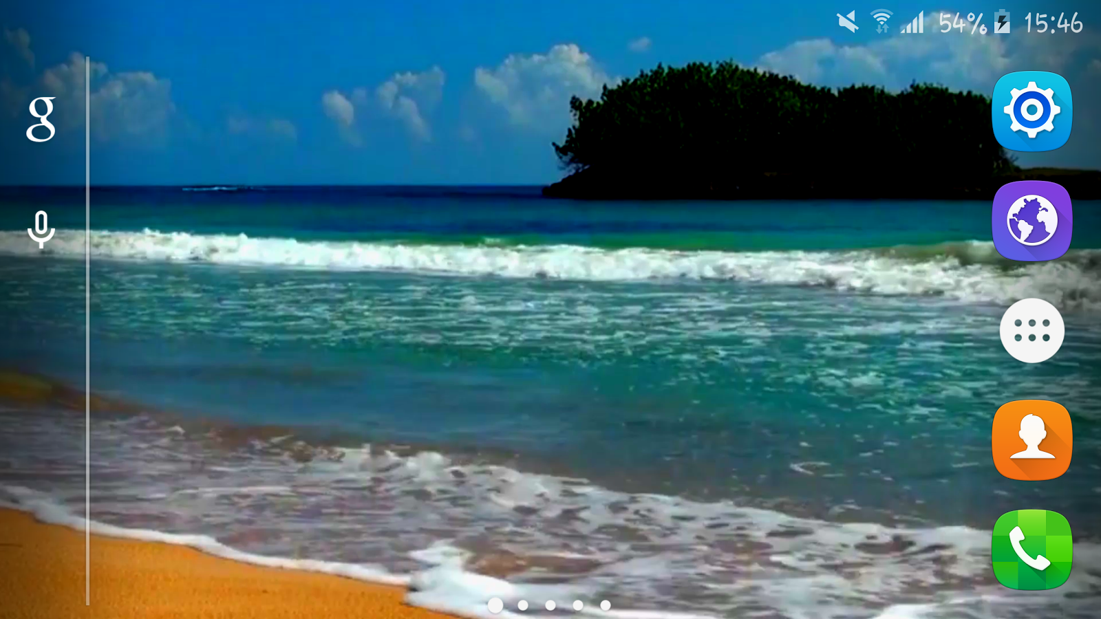 Description: A beach with a bunch of different icons on it's screen and a tree in the background with a sky.