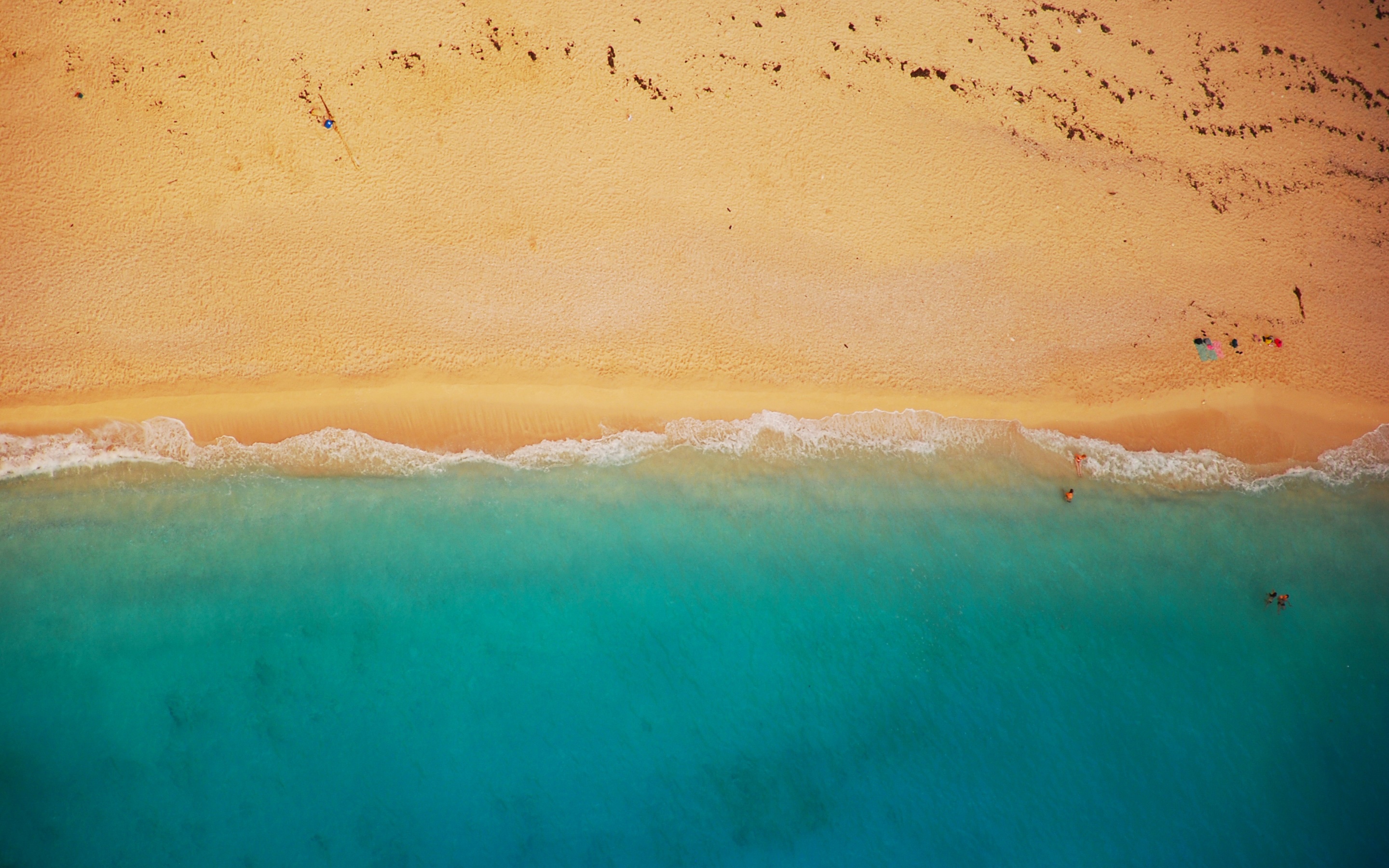 Description: A beach with a lot of people on it and a body of water in the middle of the beach.