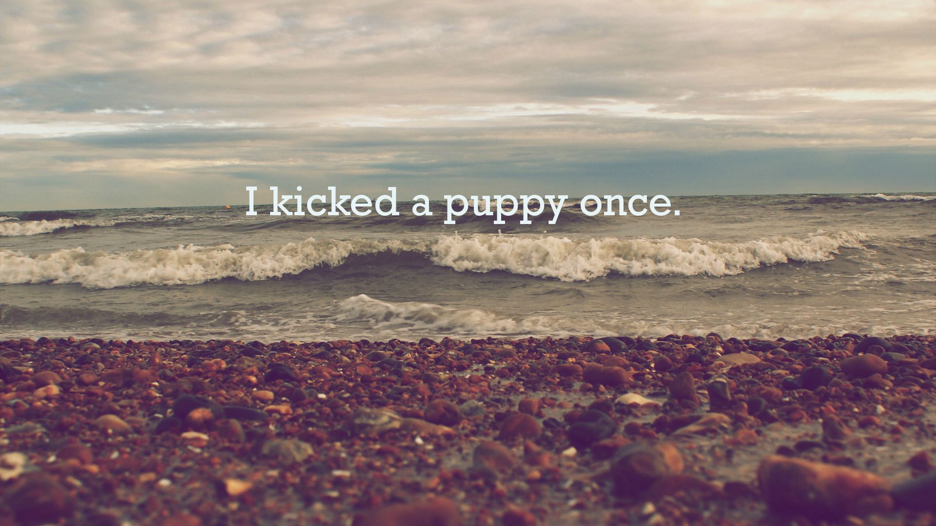 Description: A picture of a beach with a quote on it that says i kicked a puppy once on the beach.