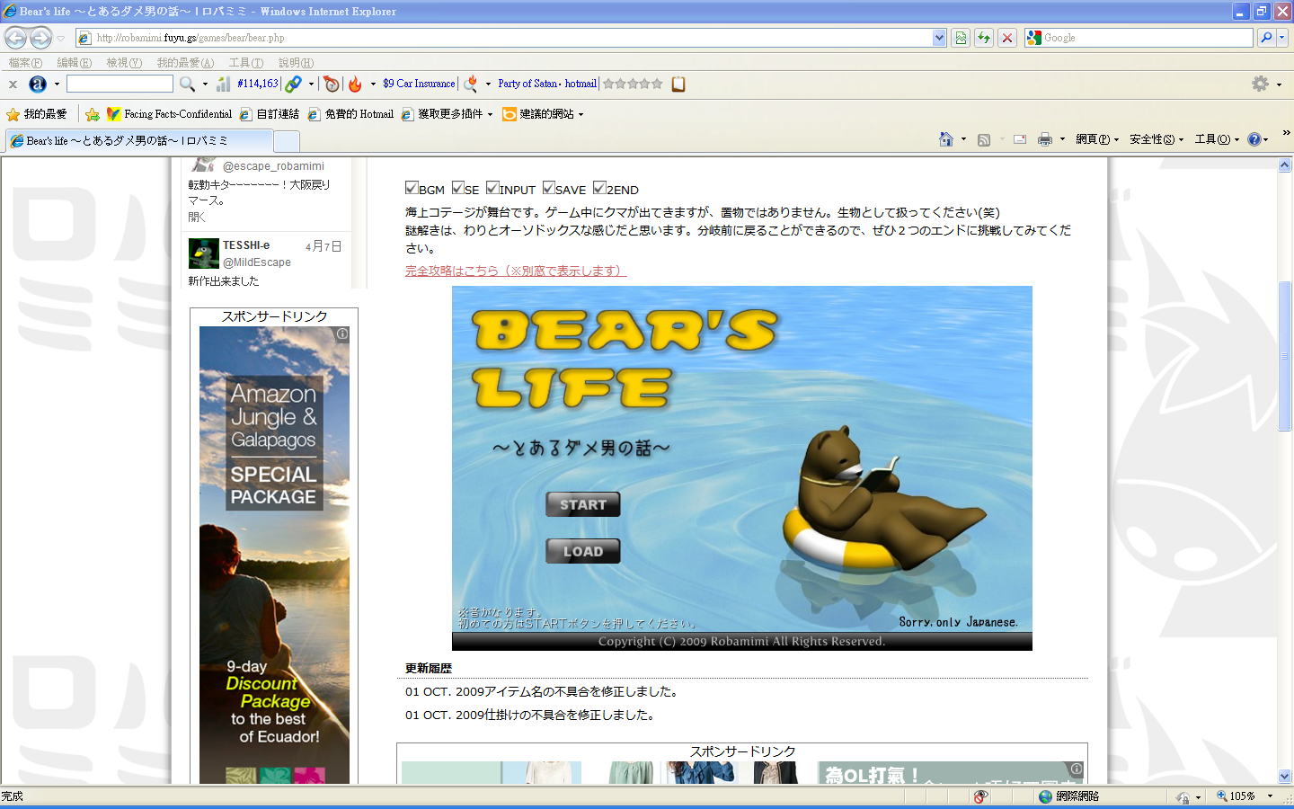 Description: A computer screen shot of a bear's life game on the webpage of a computer screen shot.