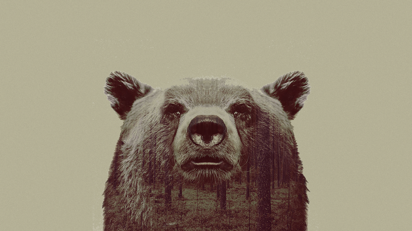 Description: A bear with a tree in the background and a sky background with a few clouds in the sky.