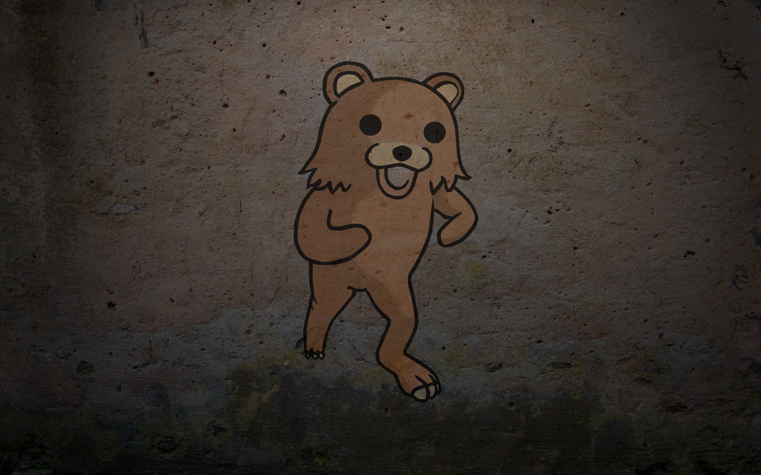 Description: A drawing of a bear on a wall with a light shining on it's face and a shadow.