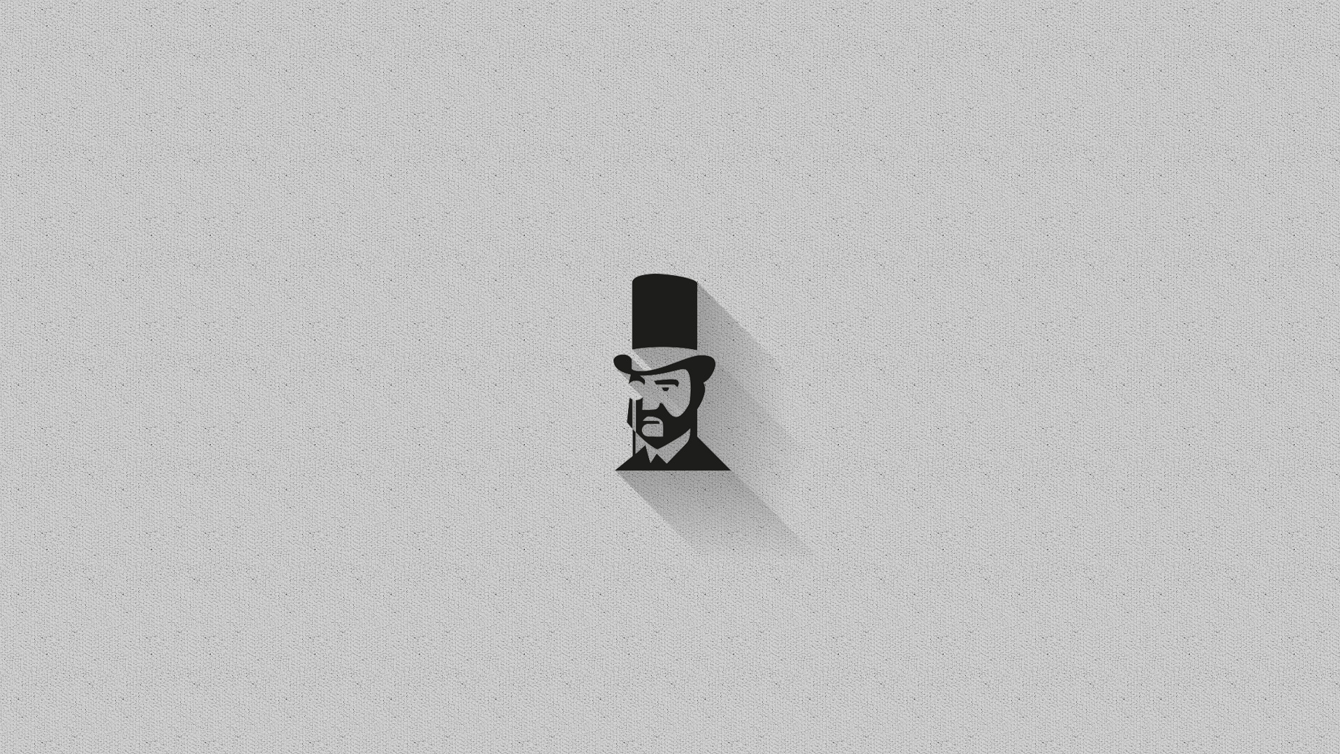 Description: A man with a beard and a top hat on a gray background with a shadow of a man's head.