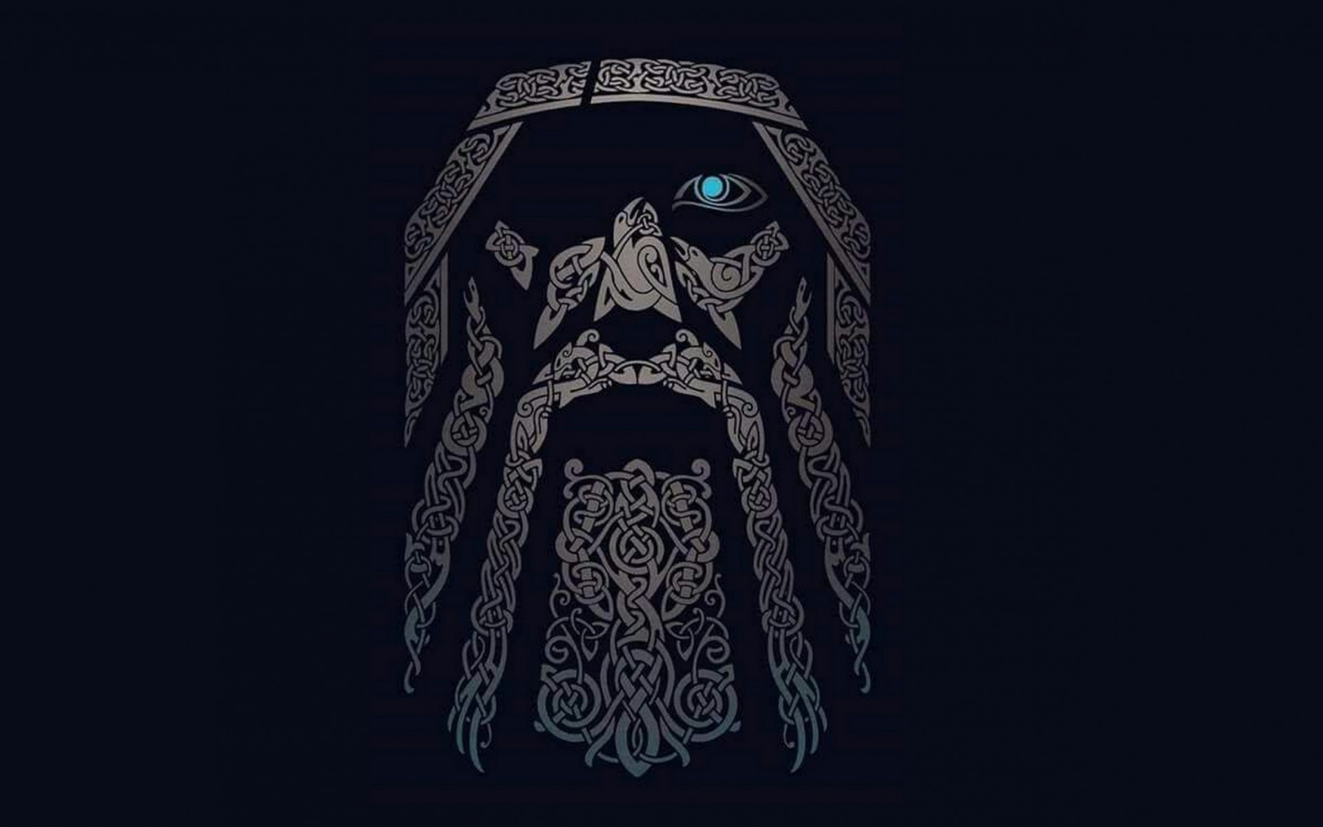 Description: A man with a beard and a blue eyes in a black background with a pattern on it's face.