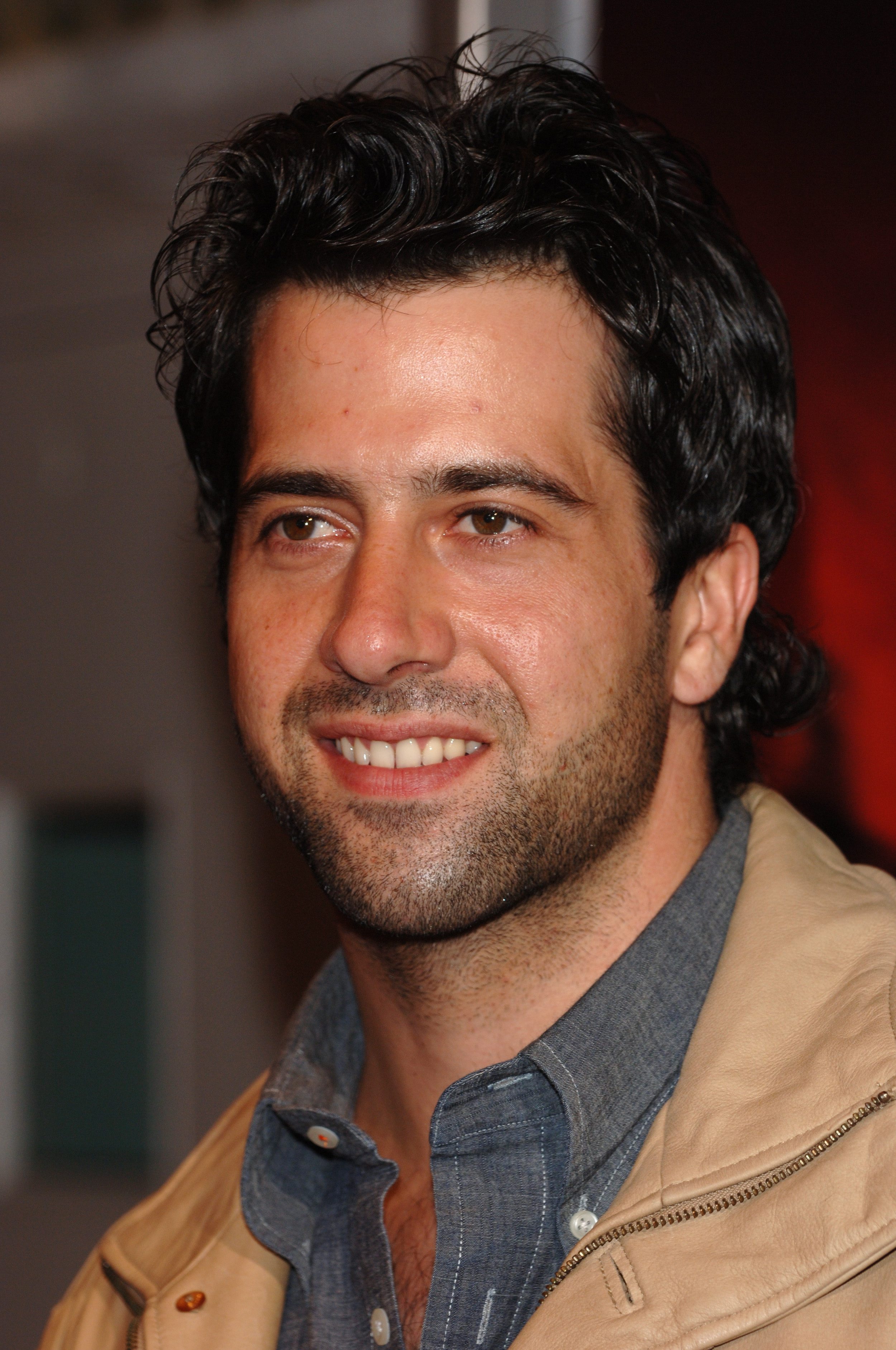 Description: A man with a beard and a smile on his face smiling at the camera with a red background behind him.