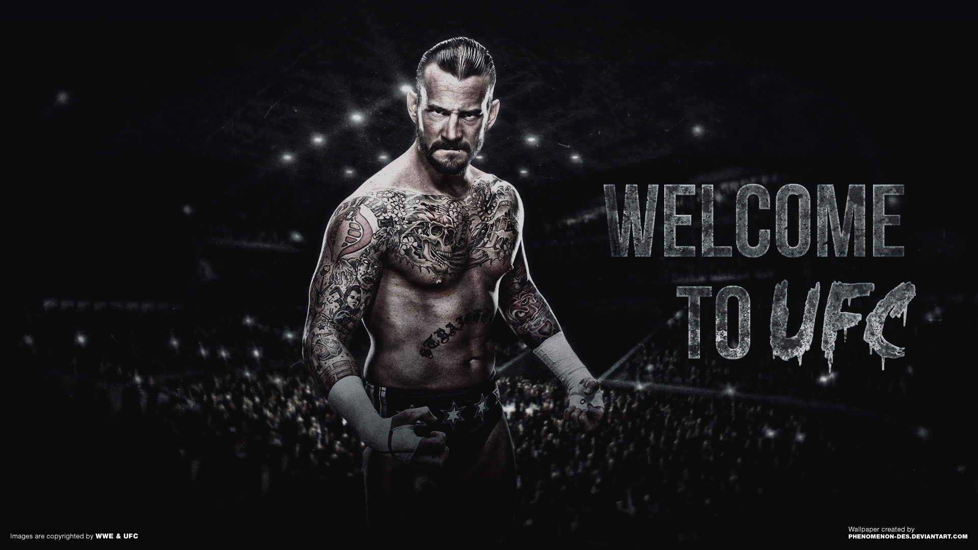 Description: A man with a beard and tattoos standing in front of a crowd with a welcome to us sign on it.