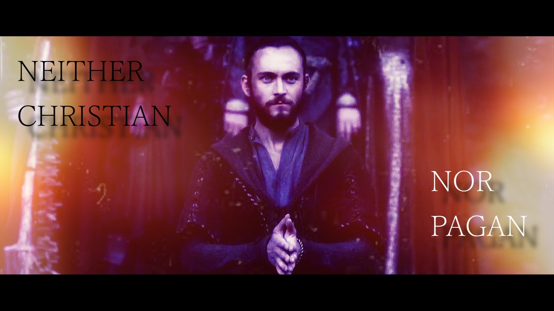 Description: A man with a beard and a beard standing in front of a wall with words written on it that say.